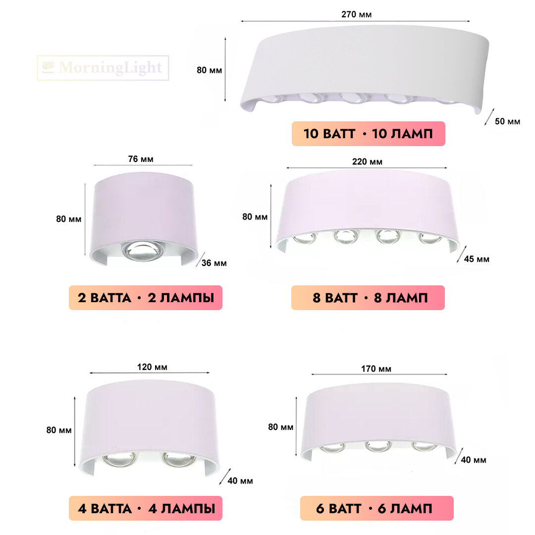 MorningLight Светильник светодиодный Настенный бра для дома квартиры Ночник Уличный светильник LED 6 ламп белый 3000К