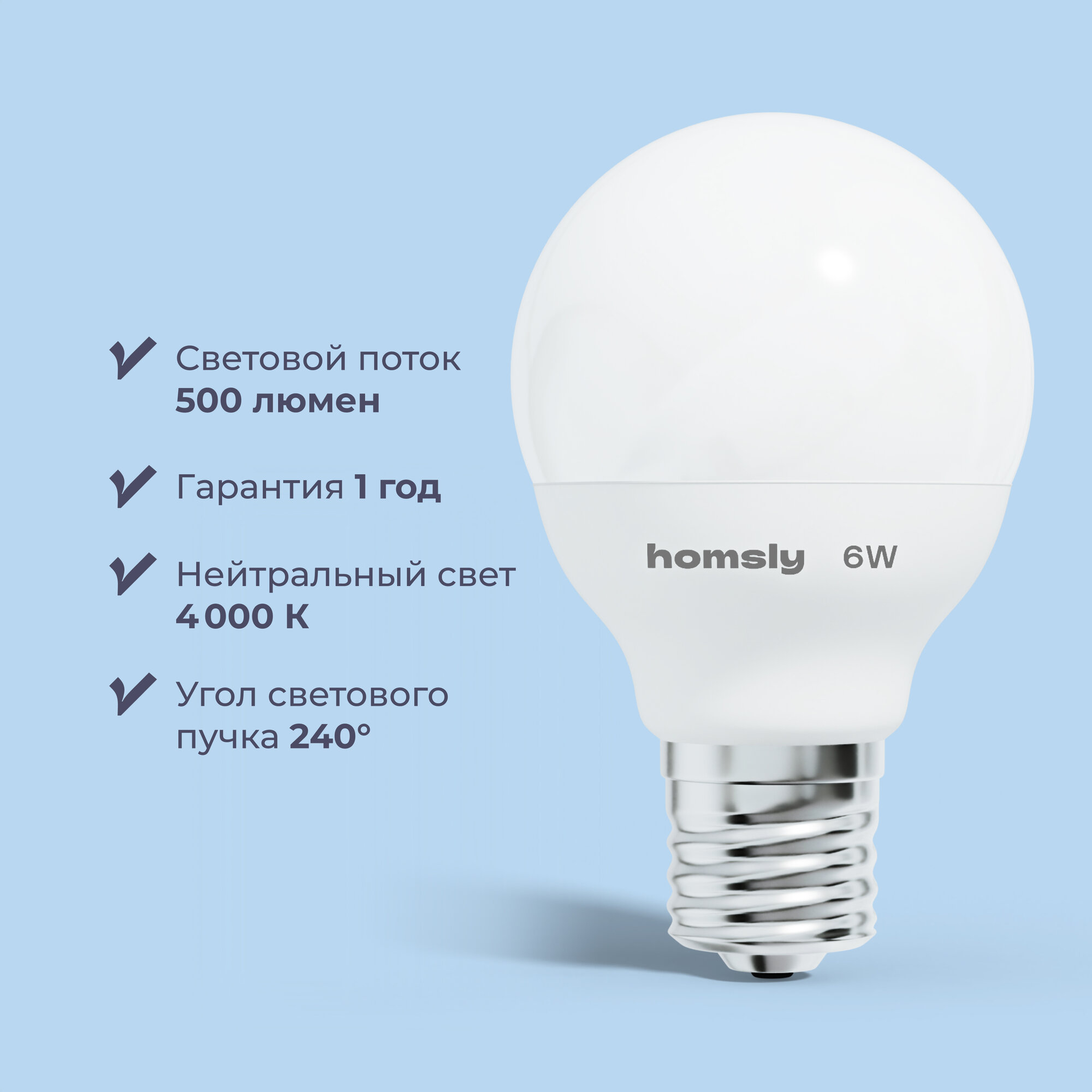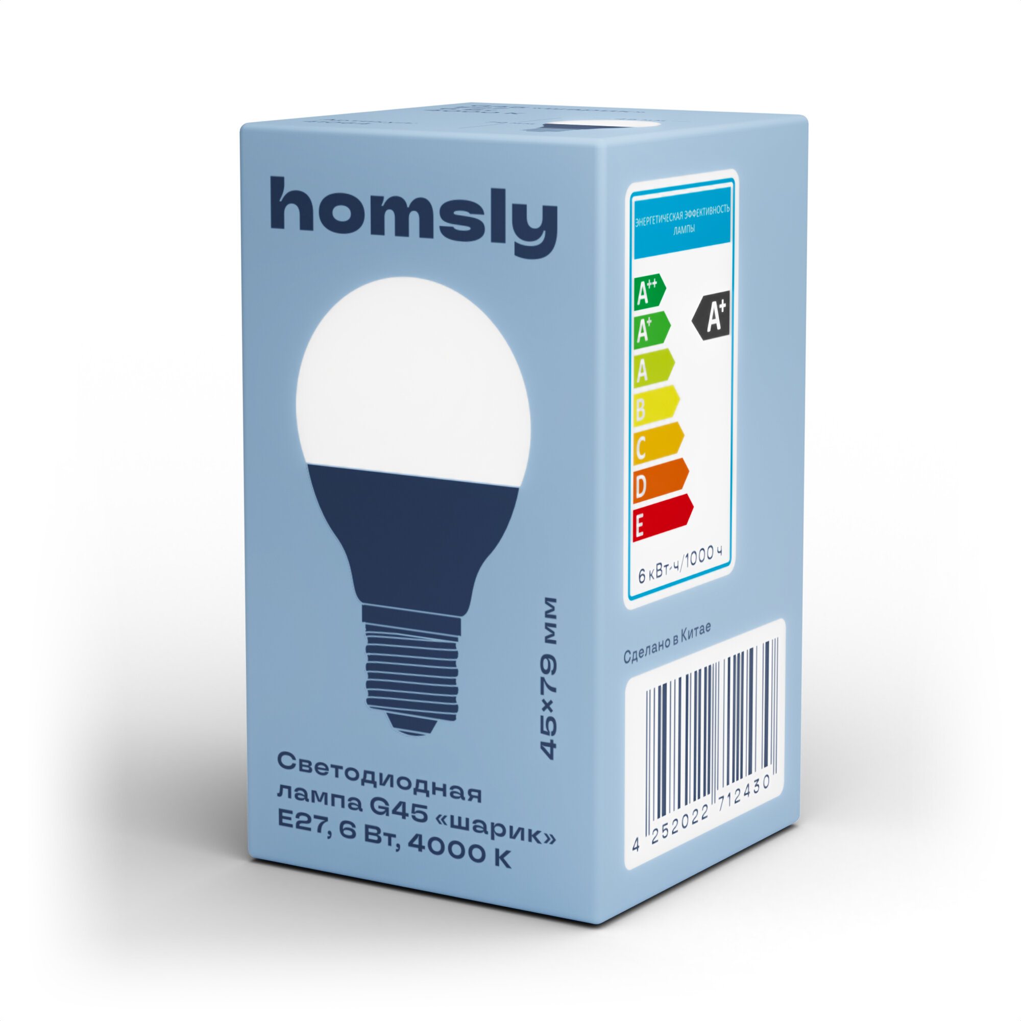 Лампа светодиодная Homsly, 6Вт, G45, Е27, 4000К