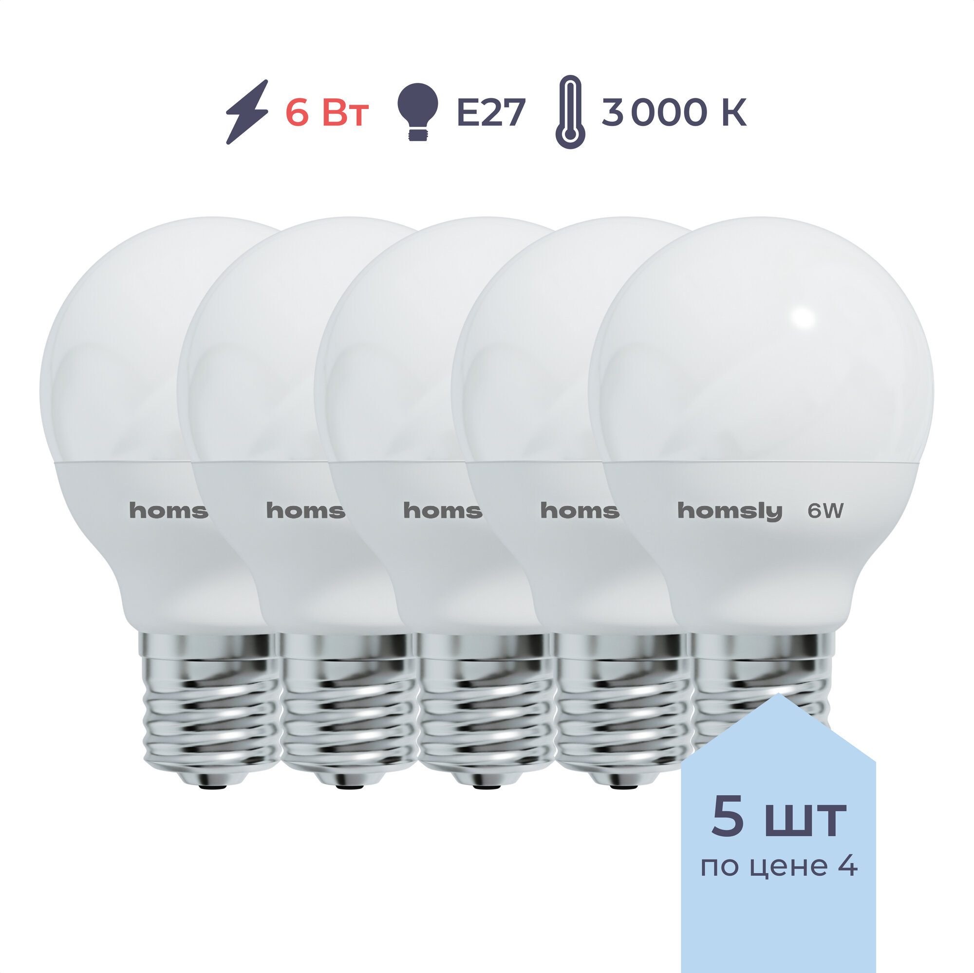 Купить 5 штук светодиодных ламп Homsly, 6Вт, G45, Е27, 3000К