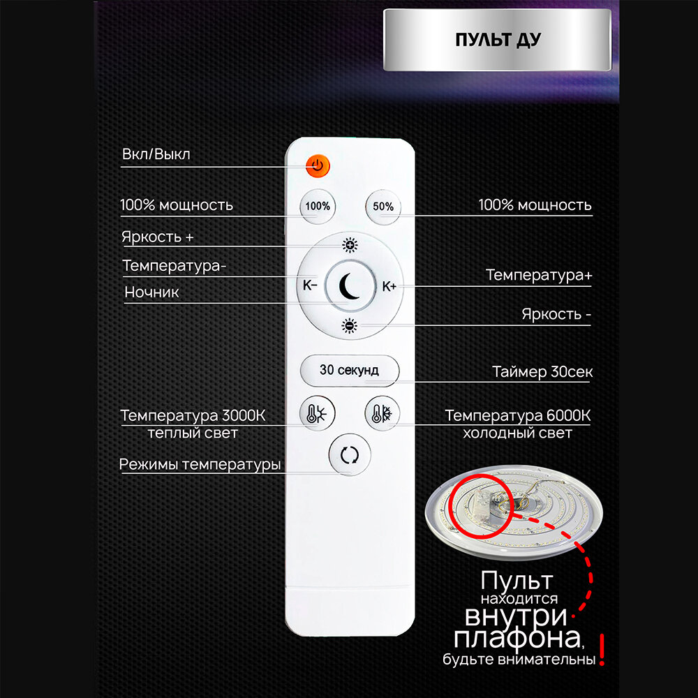 Люстра потолочная светодиодная Семь Огней, белым, с пультом, до 12 кв. м. интересное: