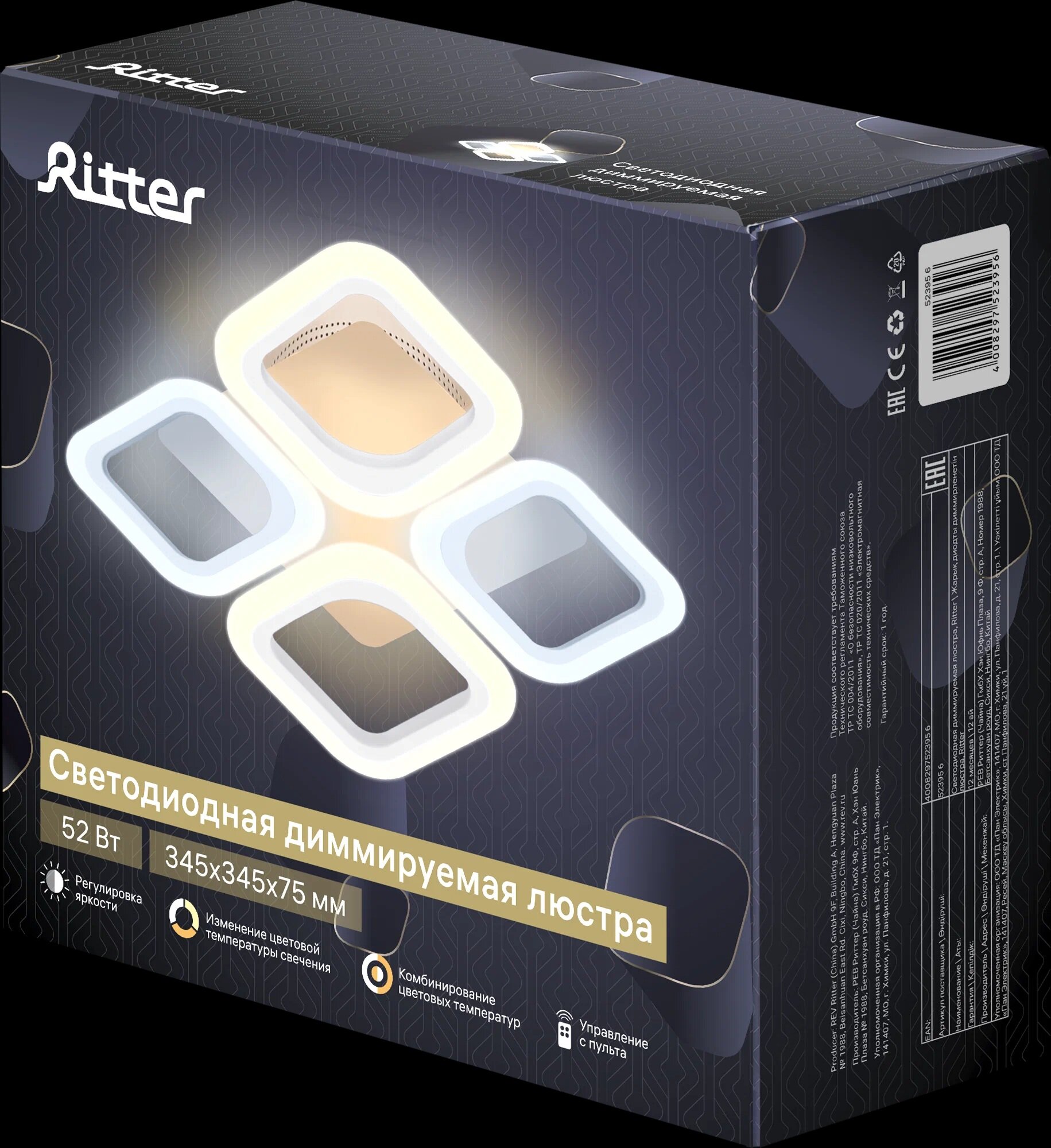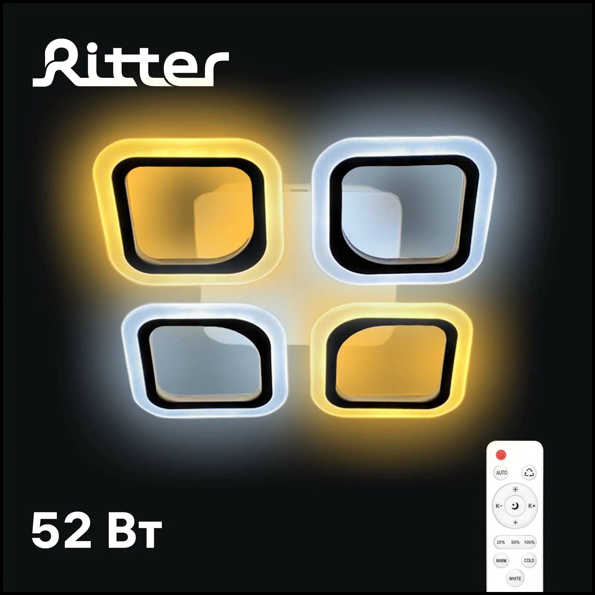 Люстра Ritter "Monza Quadro" CHL-52395, светодиодная, 52Вт, с пультом, IP20