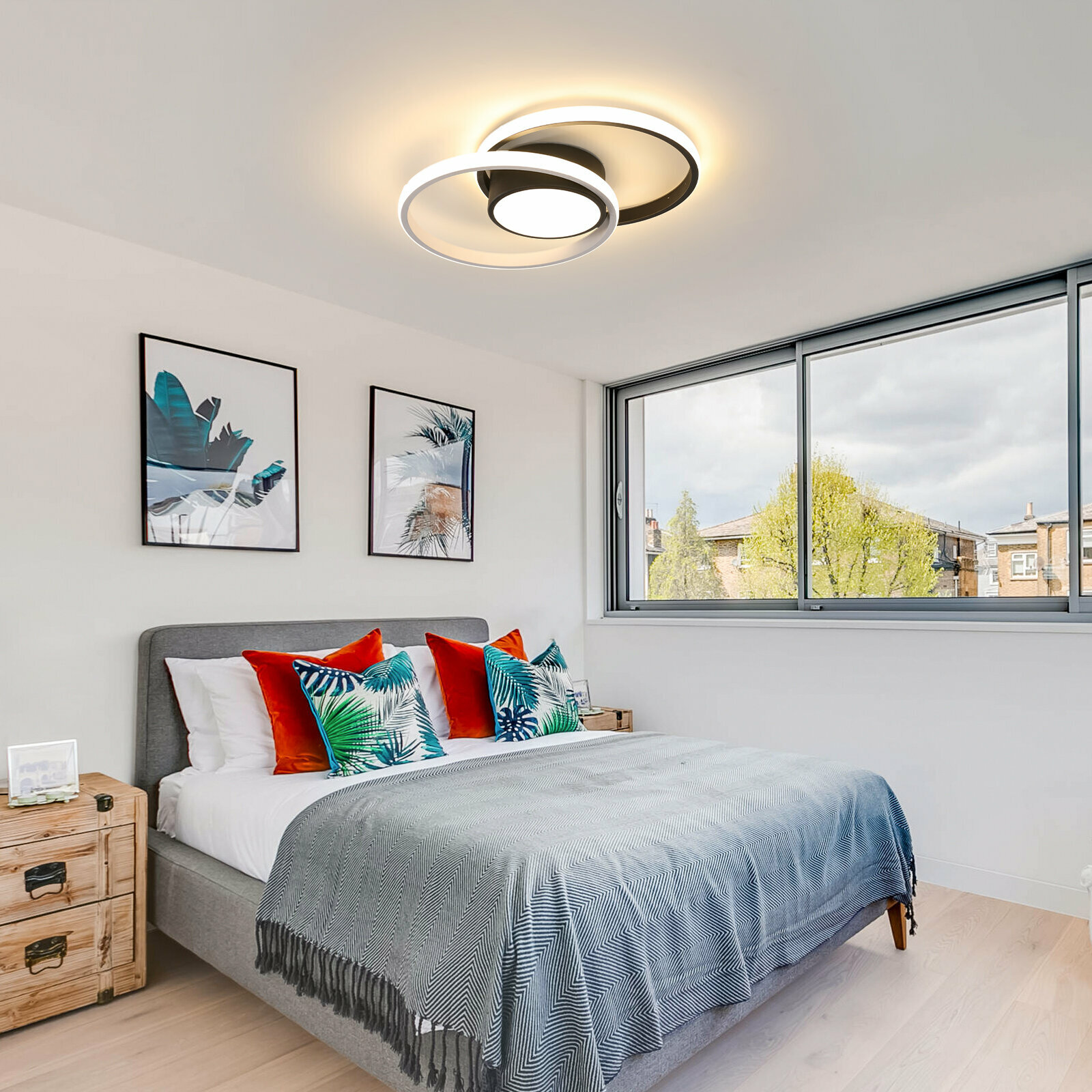 Потолочный светильники,Riserva,RI308727,Двойной круг, черный, белый свет, 32 Вт