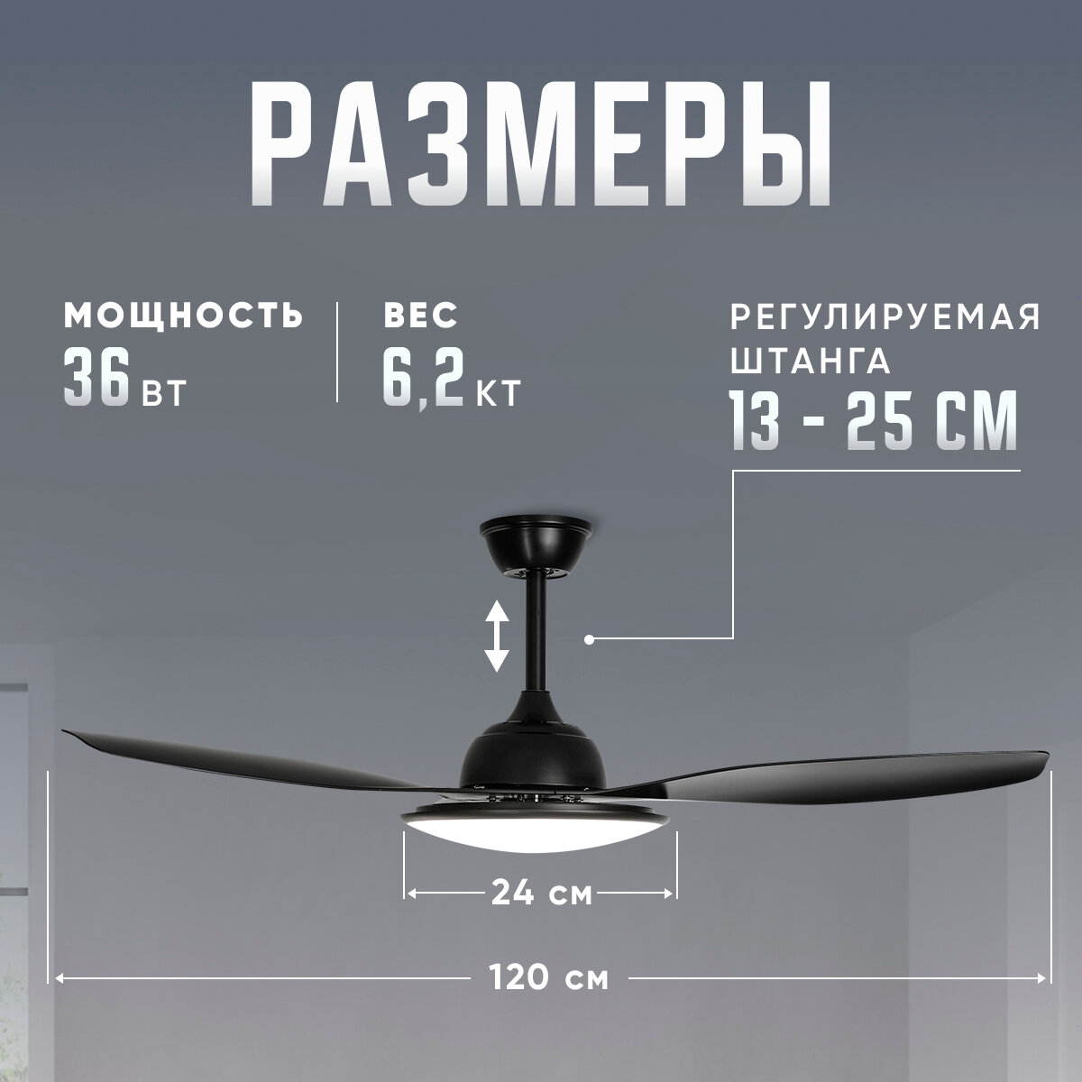 Люстра вентилятор DAIVEN Alatau Black / 120 см / 6 скоростей интересное: