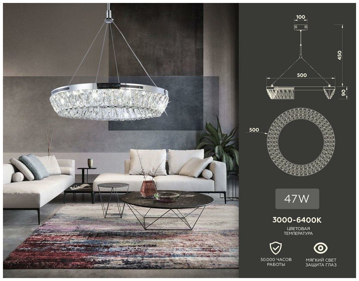 | Особенности | возможность подключения диммера / каскадная / лампы в комплекте / паук / подсветка / прозрачный плафон / регулировка по высоте / с абажуром |