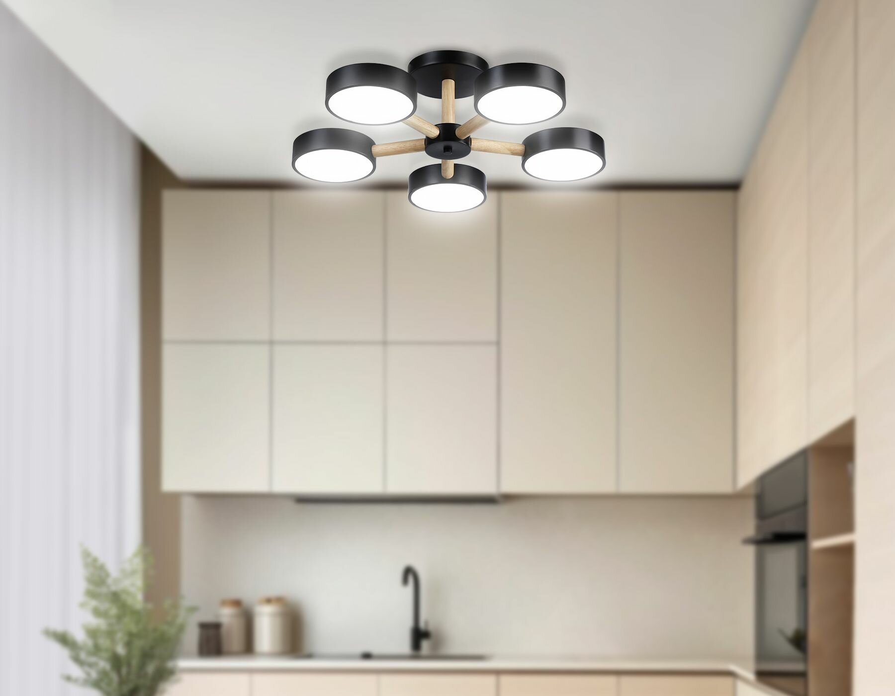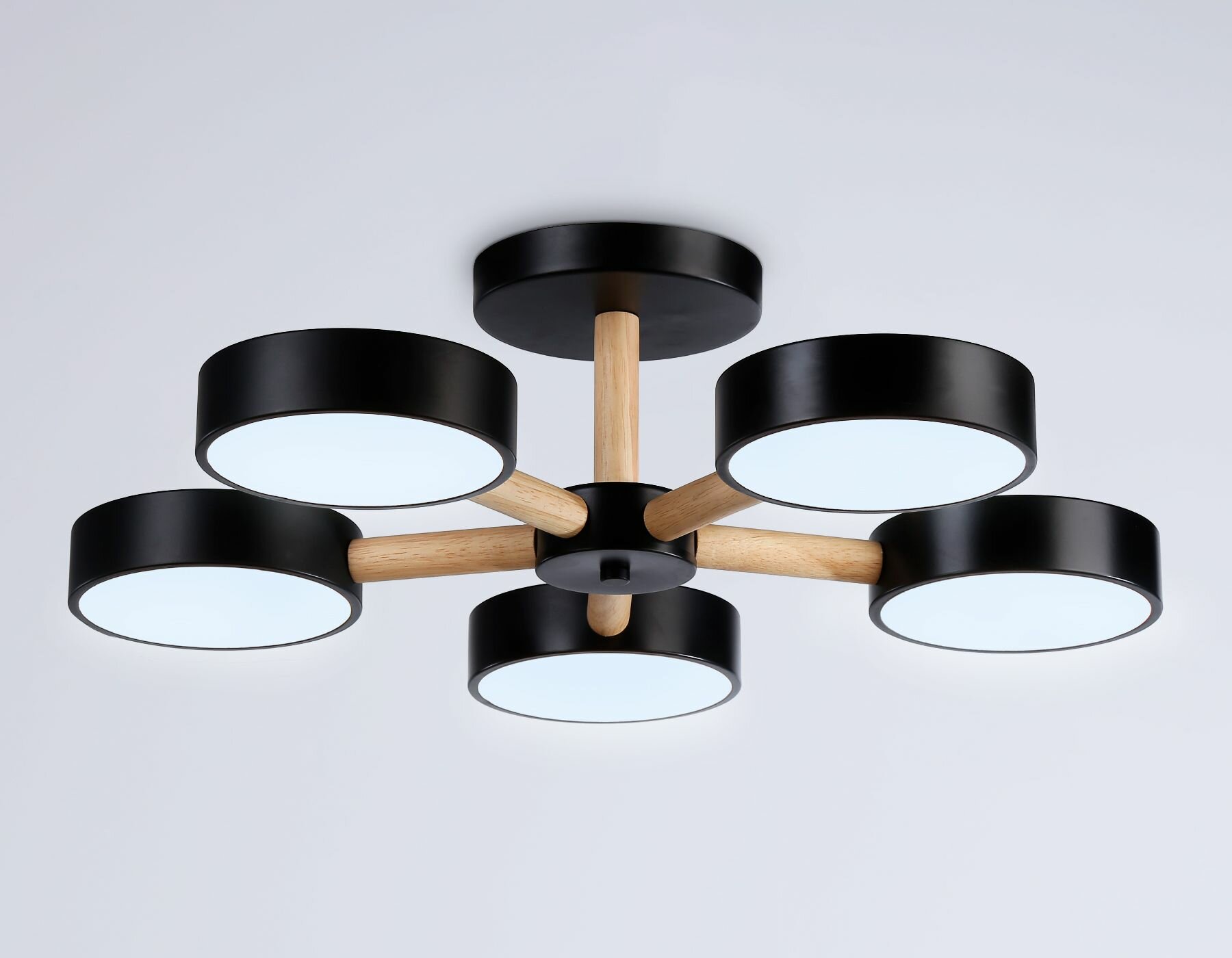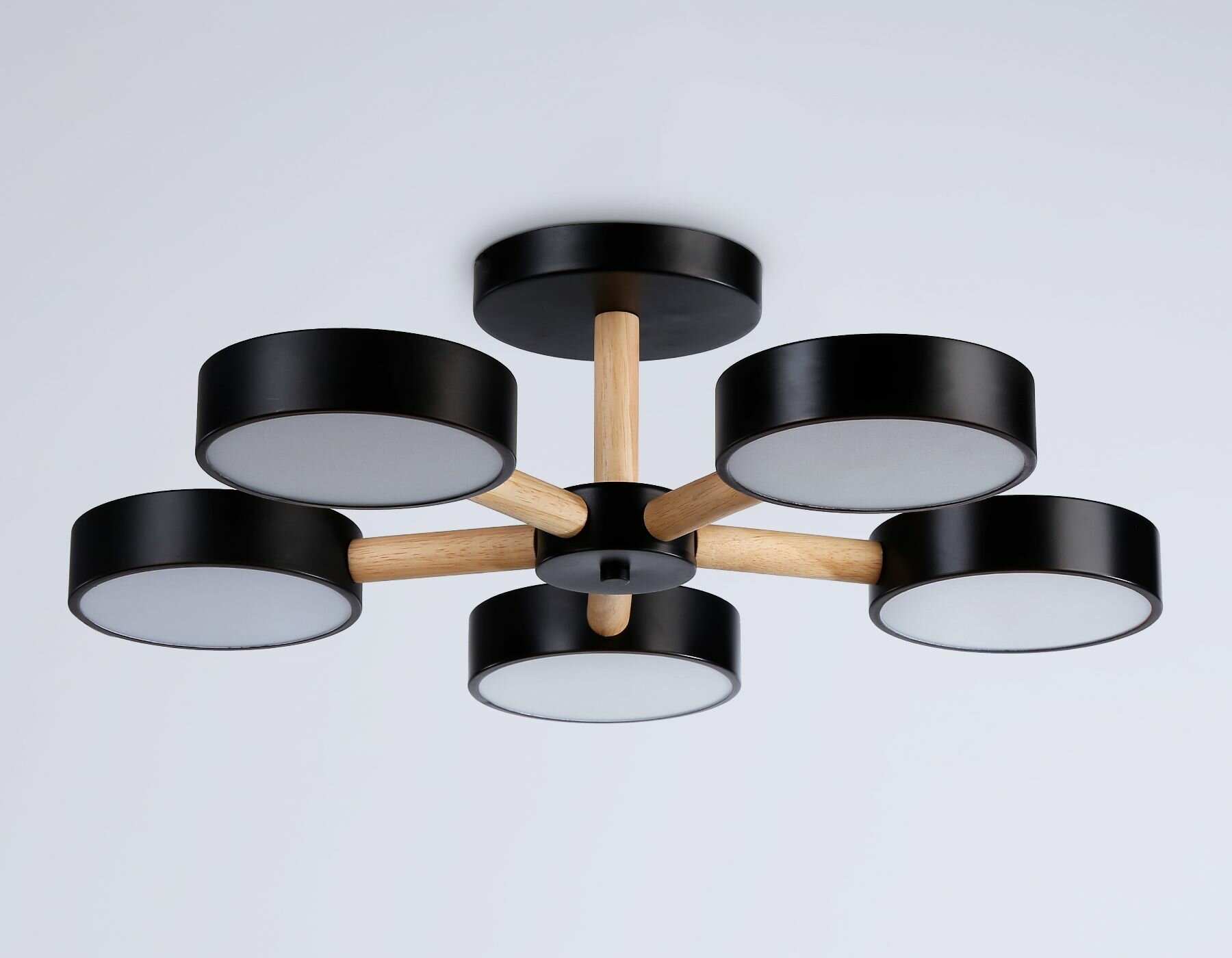 Потолочный светодиодный светильник с пультом Ambrella Light Design FZ1326BK/LWD черный/светлое дерево IP20 60W D490*80 (ПДУ ИК)