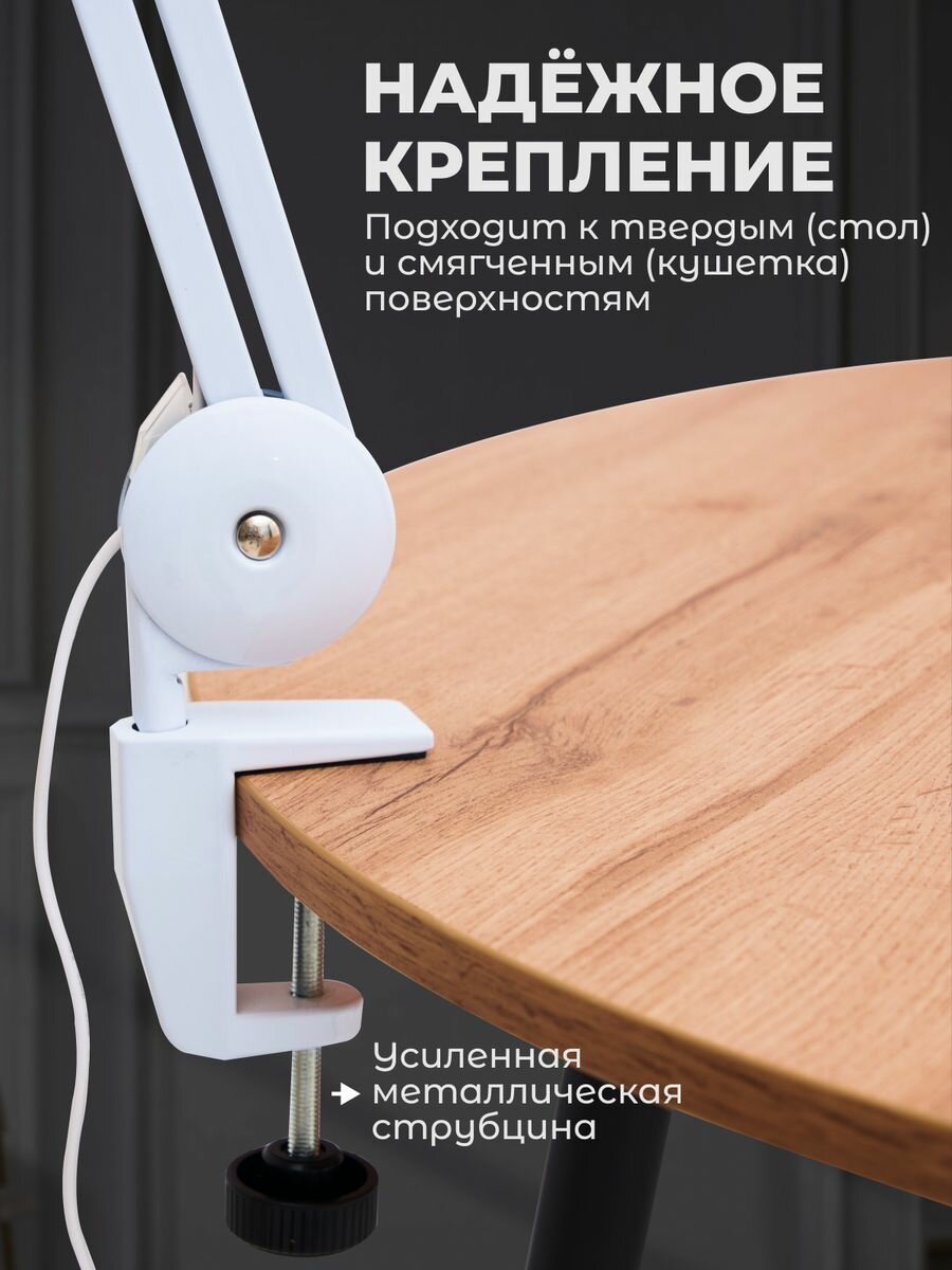 Лампа Arico, LED, бестеневой свет, на струбцине, 24Вт, 117 светодиодов интересное: