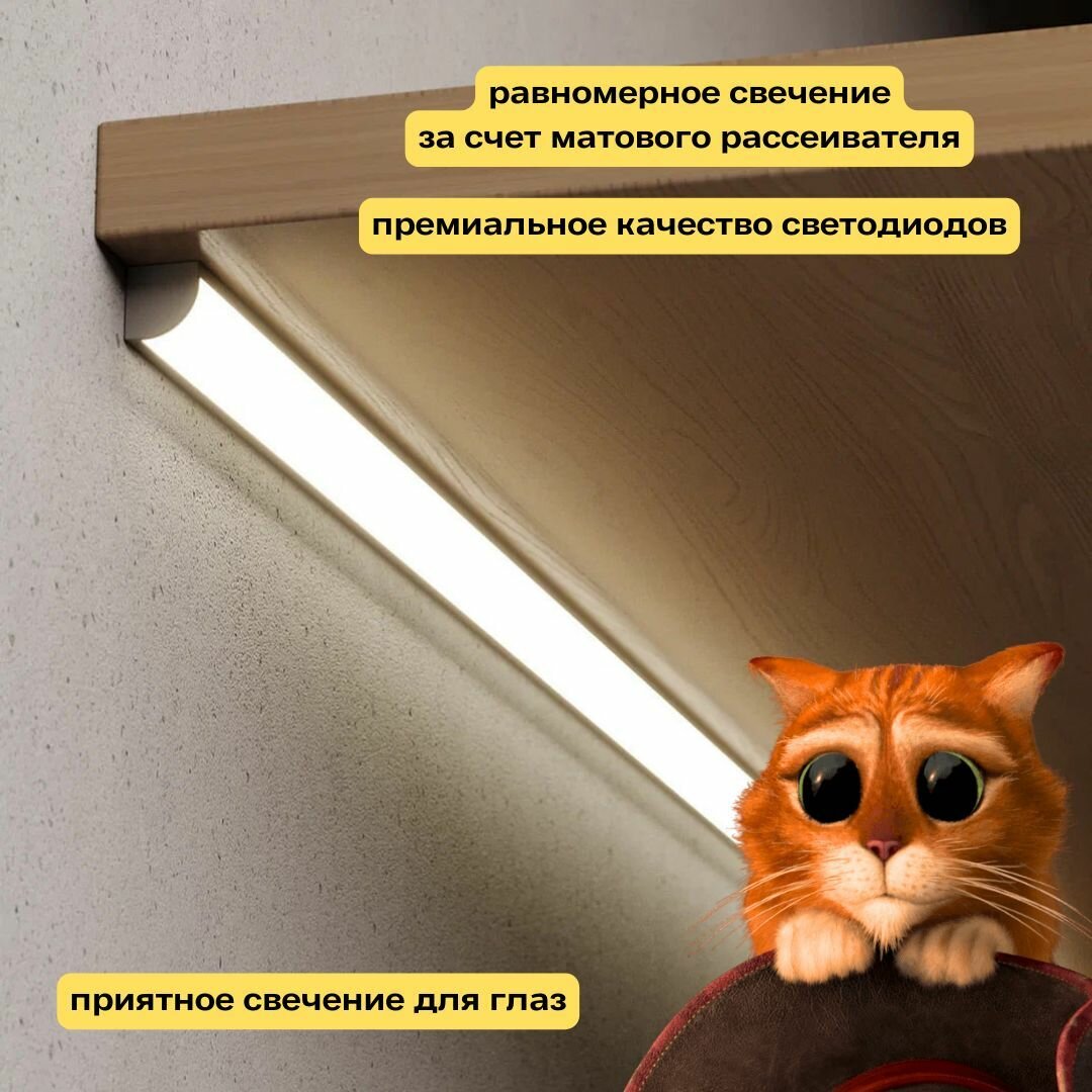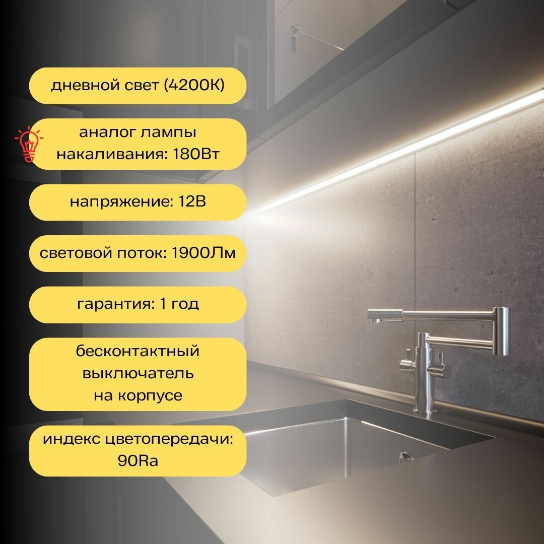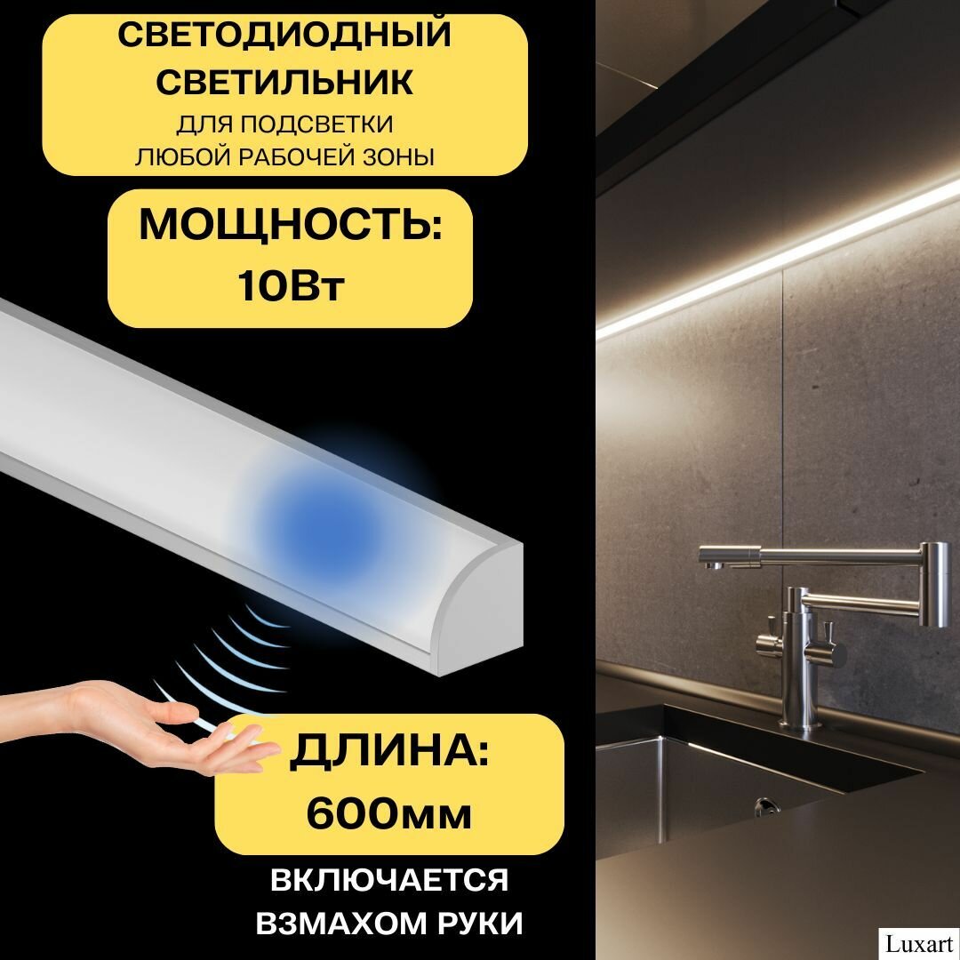 Luxart линейный светильник подсветка для кухни шкафов с бесконтактным выключателем дневной свет 10Вт блок питания в комплекте