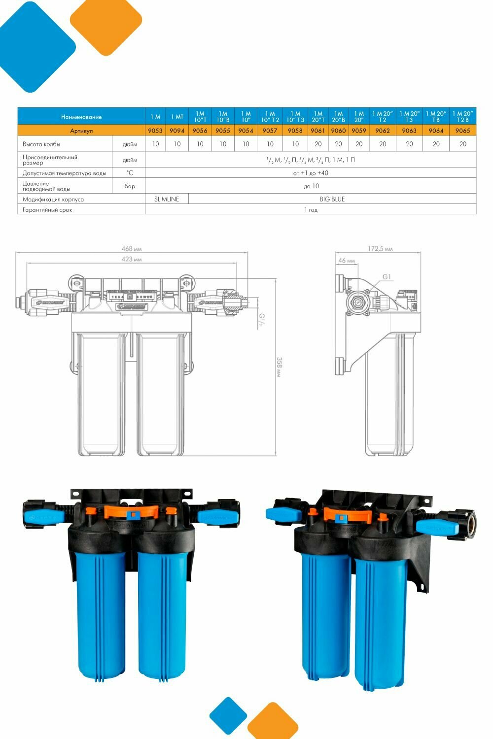 | Дополнительная информация | температура очищаемой воды 1-40°С |