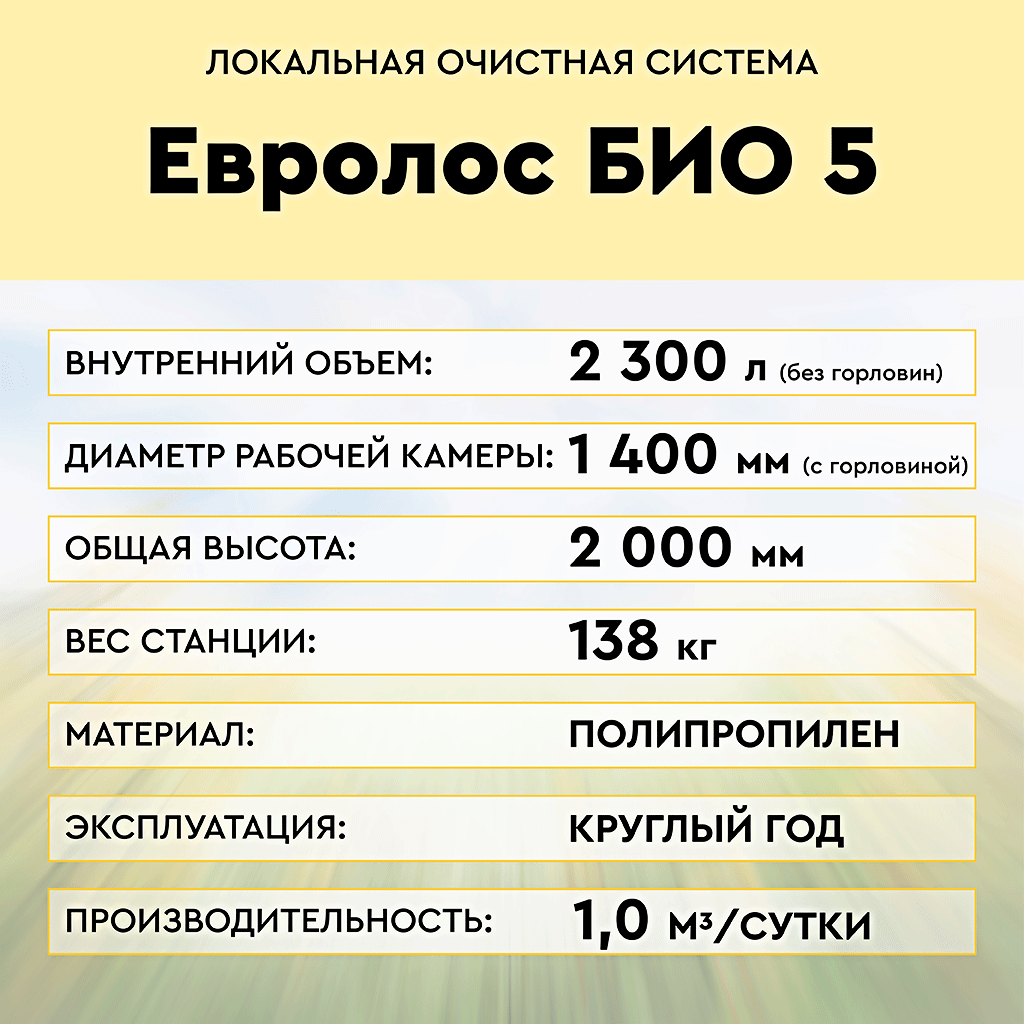 Септик Евролос Био 5, 5 пользователей, полипропилен, цилиндр интересное:
