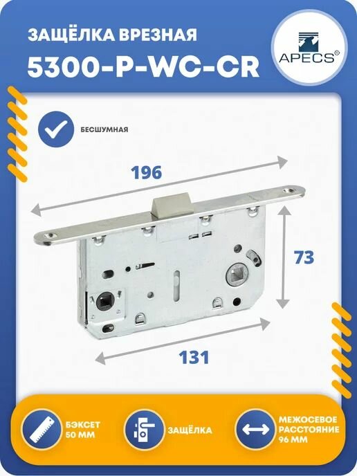 Купить Защёлка врезная межкомнатная APECS 5300-P-WC-CR (бесшумная)