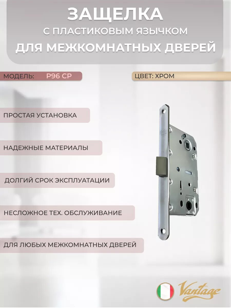 Защелка сантехническая, межкомнатная с пластиковым язычком Vantage P96 CP хром