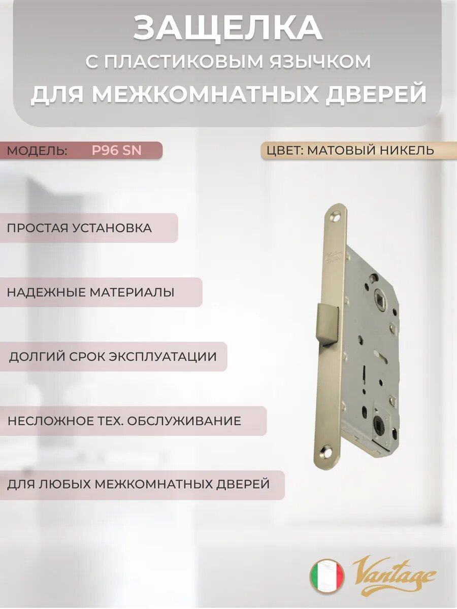 Купить Защелка межкомнатная с пластиковым язычком P96 SN никель