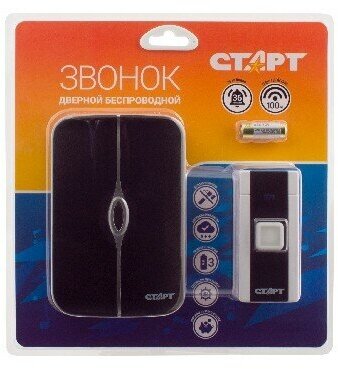 Звонок Старт Б/З 006, беспроводной, 36 мелодий, R=80 м, 1кнопка+1звонок, 3хАА(не в компл.)