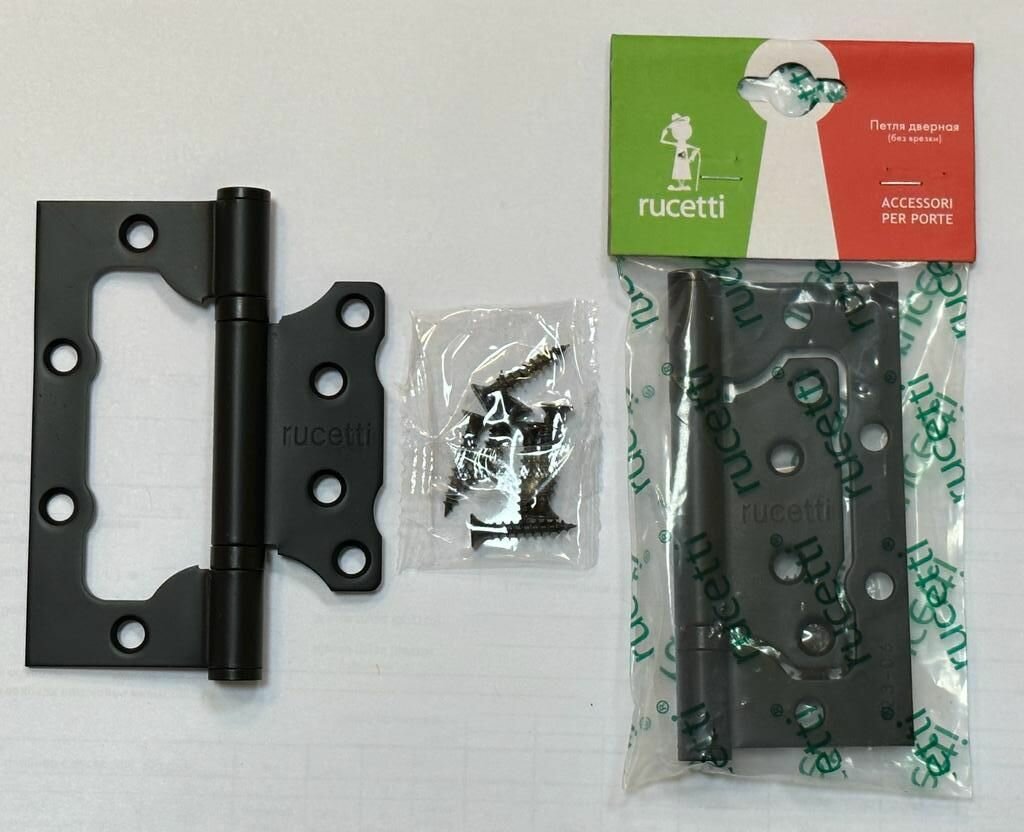Петли дверные Rucetti без врезки RFH-100*70*2.5 BL черные, комплект 2 шт., петли металлические накладные для межкомнатных дверей