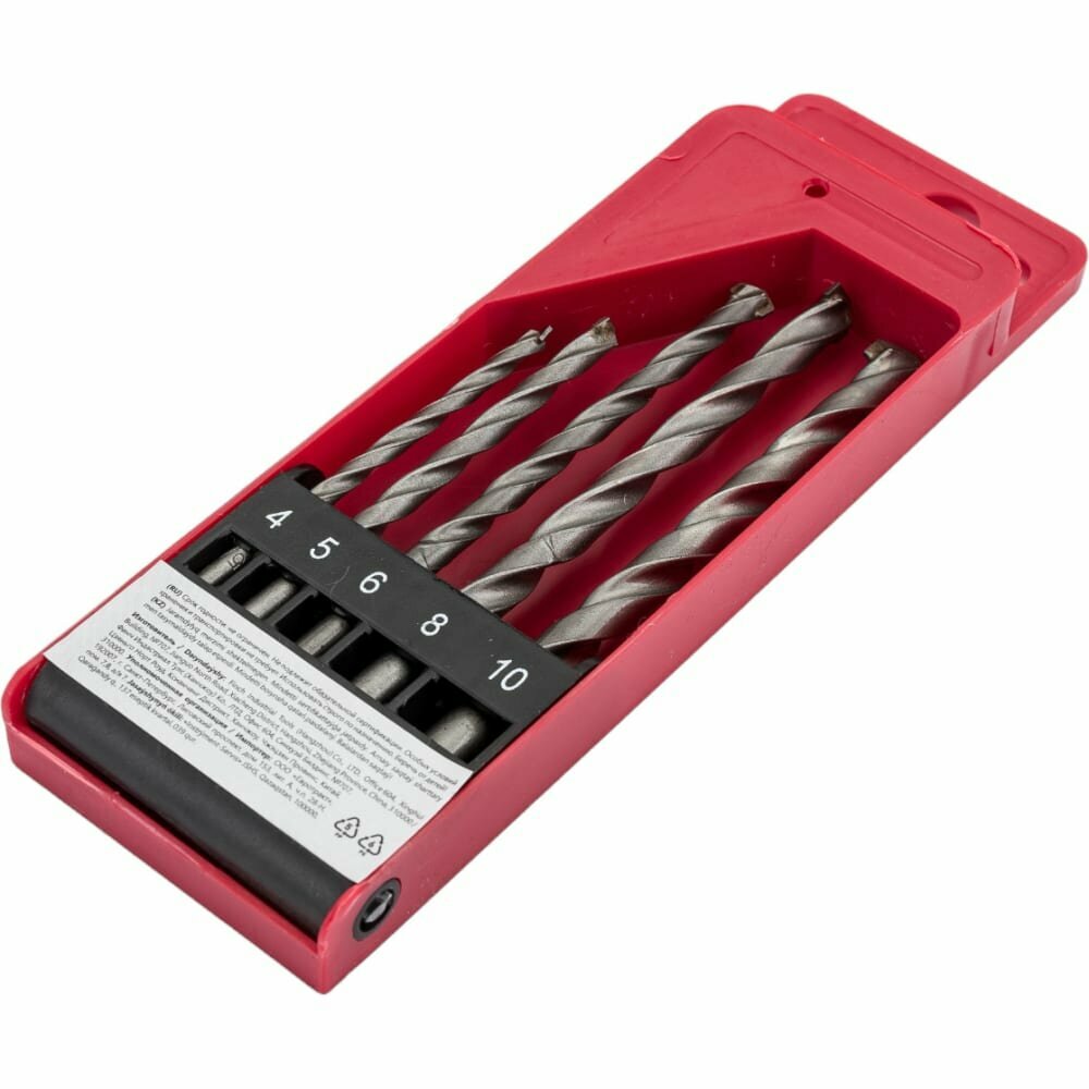 Набор сверл победитовых ударных, цилиндрический хвостовик, 5 шт. (4-5-6-8-10 мм)