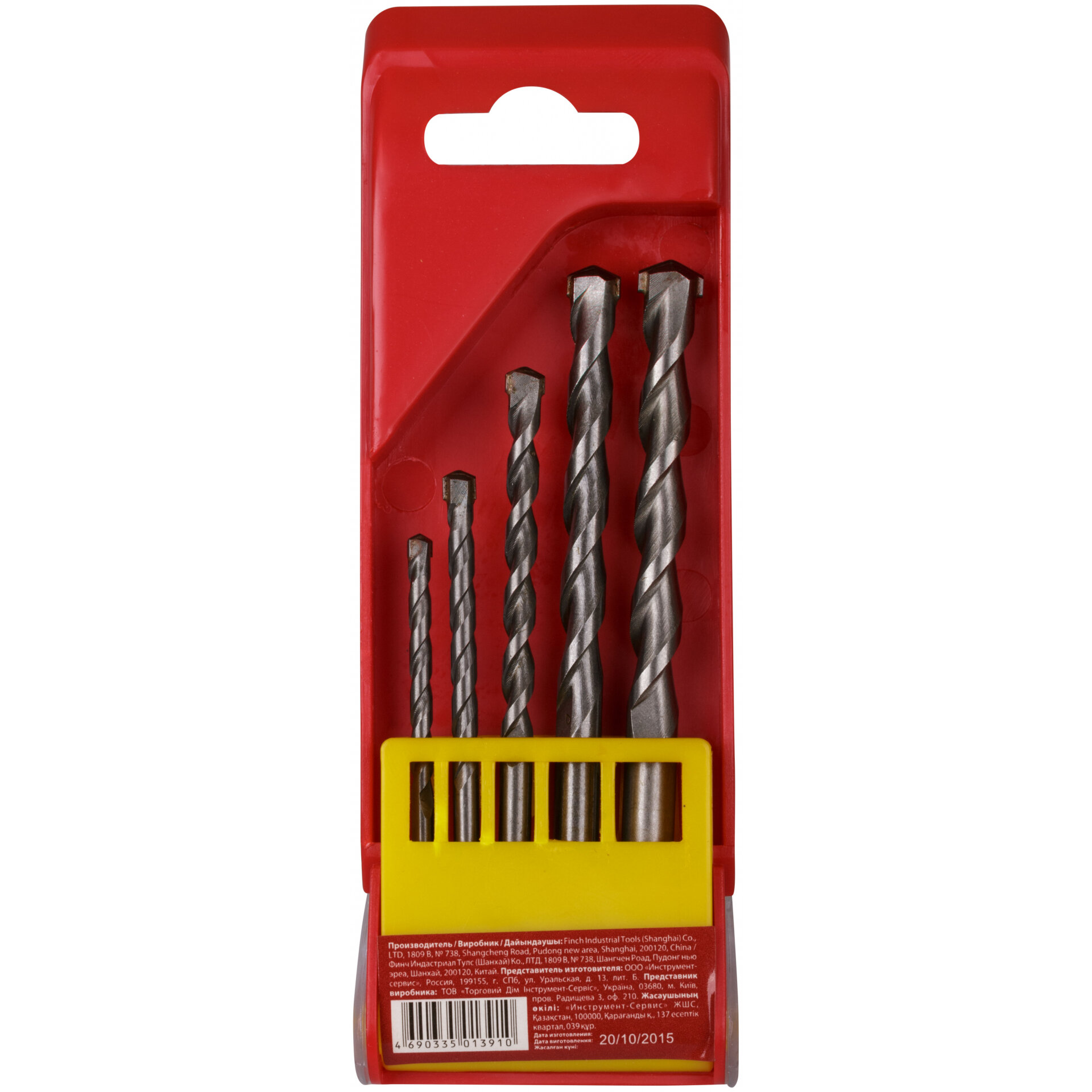 Набор сверл победитовых ударных, цилиндрический хвостовик, 5 шт. (4-5-6-8-10 мм), курс 34580 (1 шт.)
