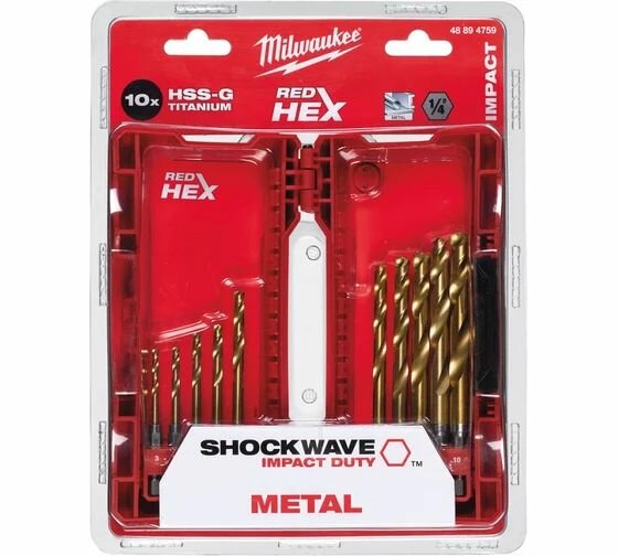 MILWAUKEE 48894759 Набор сверл по металлу Milwaukee RedHEX HSS-G TiN (10 шт)