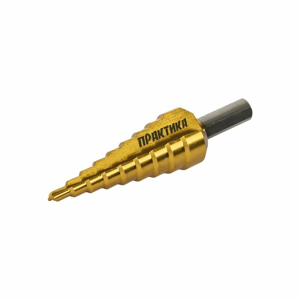 Купить Сверло по металлу ступенчатое ПРАКТИКА 4-20 мм шаг 2 мм TIN (1шт.), профи