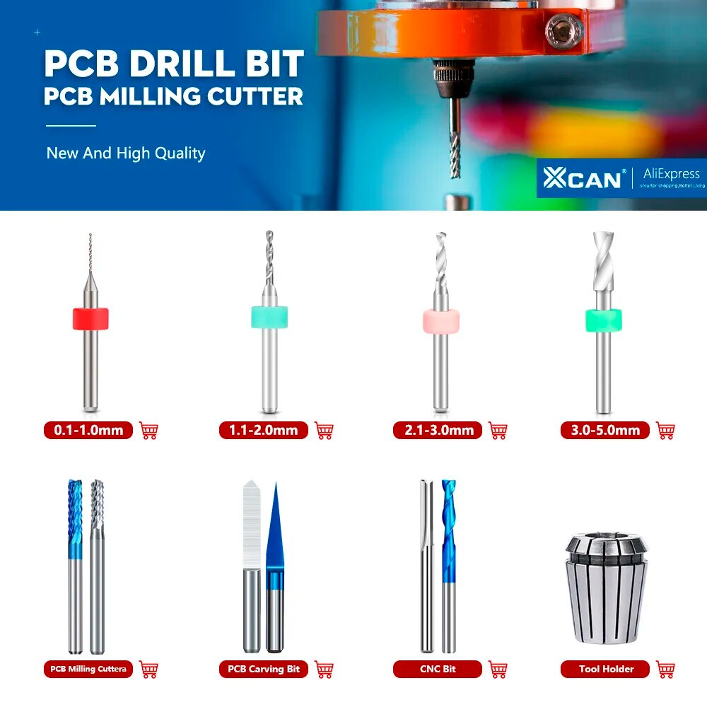 Купить Сверло XCAN для печатных плат 0,1-1,0 мм, 1BOX(10pcs), 0.1-1.0mm Set