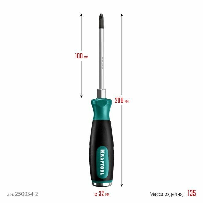 KRAFTOOL PH2х100мм, отвертка ударная X-DRIVE PLUS 250034-2