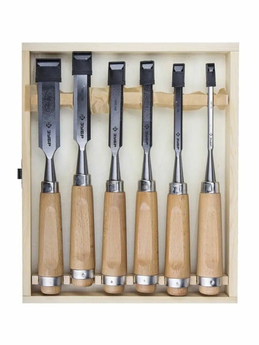 Набор стамесок-долот ЗУБР эксперт, с деревянной ручкой, хромованадиевая сталь, 6; 10; 12; 16; 20; 25мм, 6шт 18096-H6