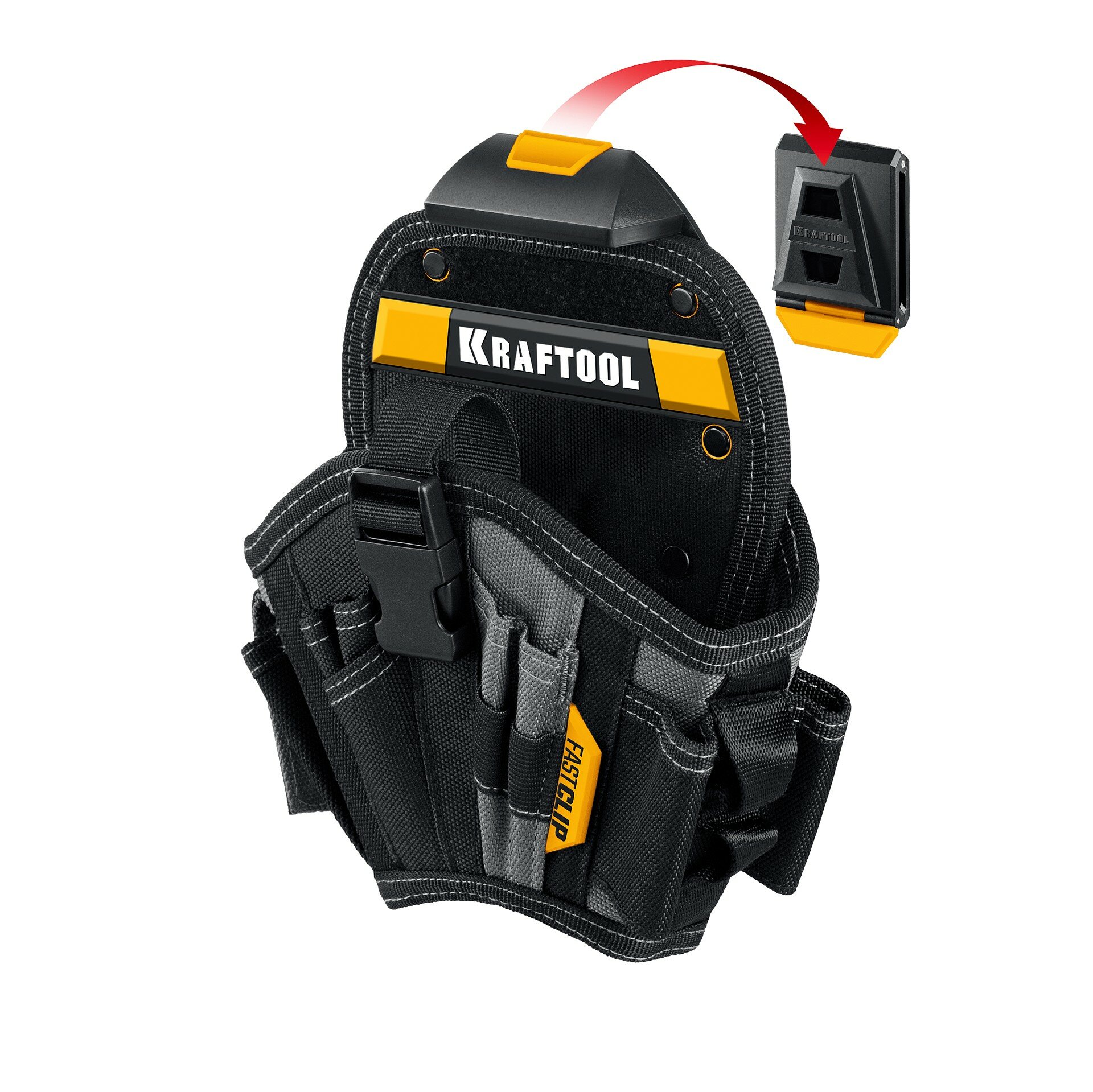 Кобура Kraftool FastClip для шуруповерта, 17 отсеков, быстросъемное крепление, черный цвет 38768