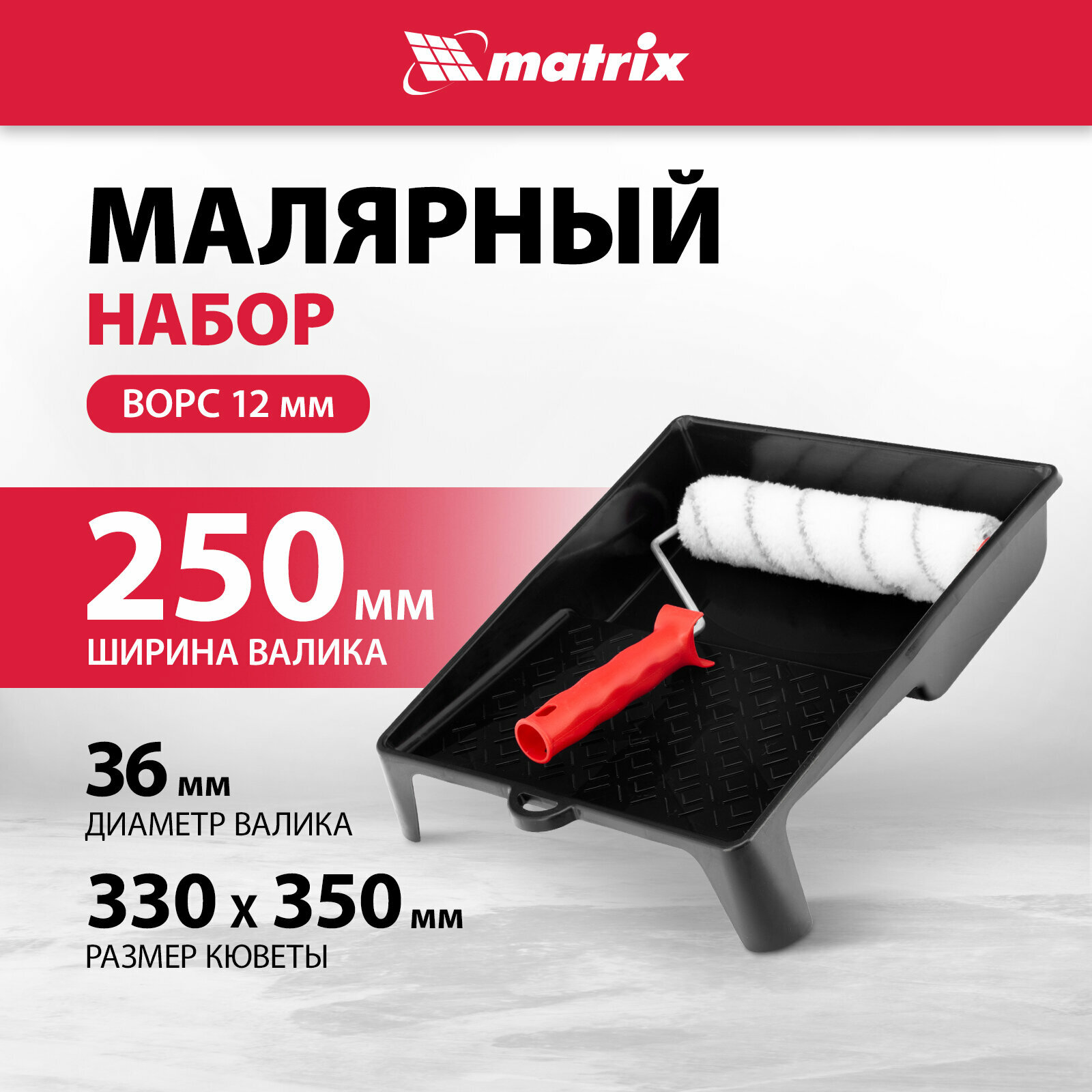 Купить Набор: валик грейтекс, 250 мм, ворс 12 мм, D 36 мм, кювета 330*350 мм Matrix 84405