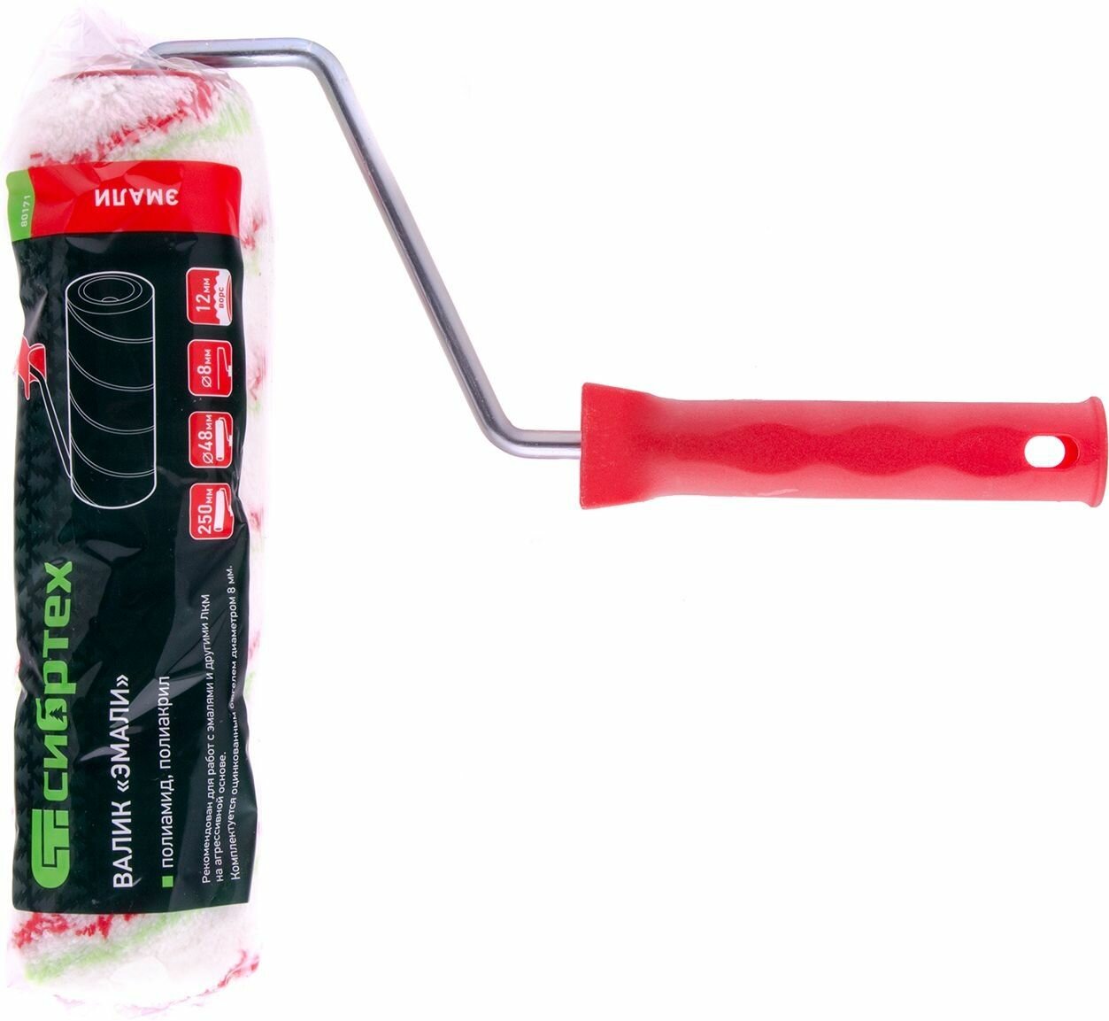 СИБРТЕХ Валик "Эмали" , 250 мм, ворс 12 мм, D - 48 мм, D ручки - 8 мм, полиамид,полиакрил 80171