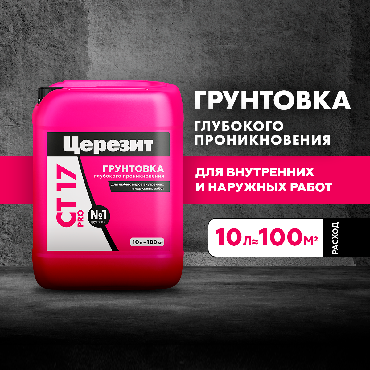 СохранитьCERESIT CT 17 PRO грунтовка глубокого проникновения для наружных и внутренних работ (10л) интересное: