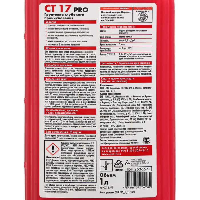 Грунтовка глубокого проникновения СТ 17 PRO 1 л