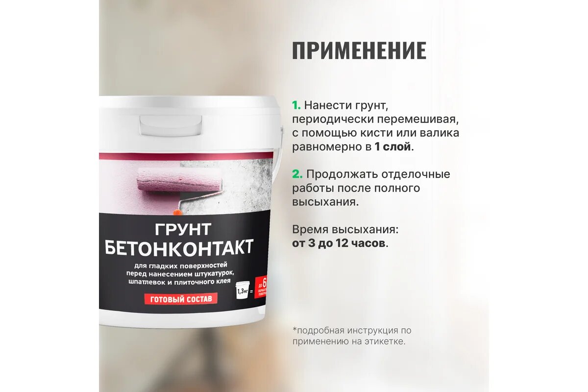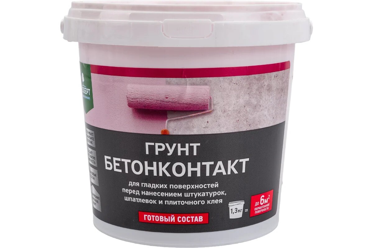 Грунтовка Бетонконтакт PROSEPT для гладких поверхностей перед нанесением штукатурок, шпатлевок и плиточного клея готовый состав, 1,3 кг