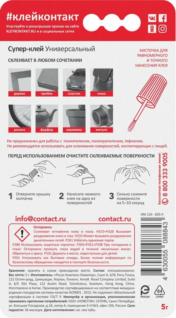 Супер-клей универсальный Контакт с кистью 5 г интересное: