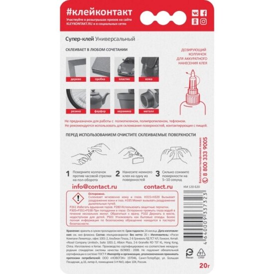 Купить Клей универсальный Контакт Супер-клей 20 г, блистер, КМ 120-Б20