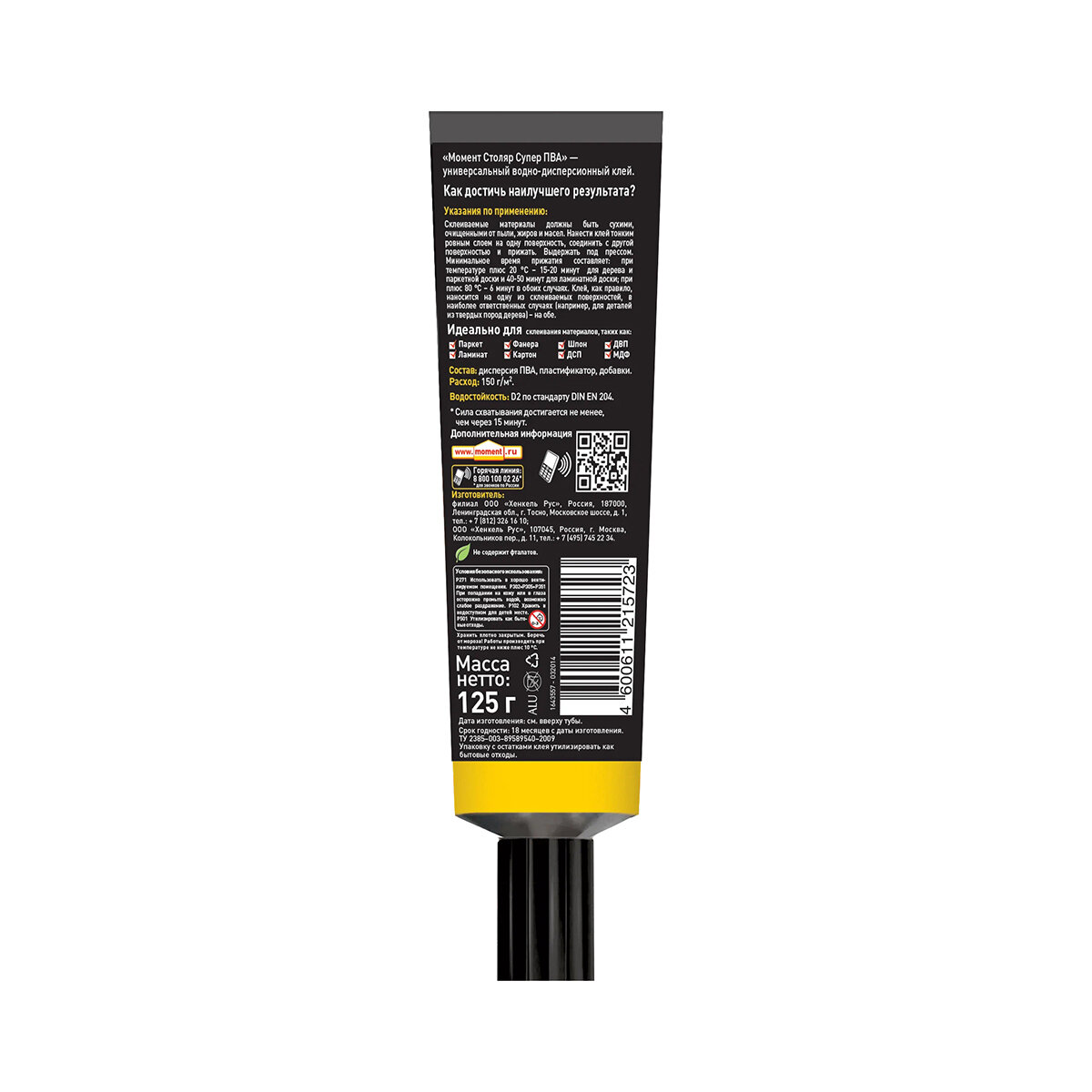Клей для всех пород дерева Момент Столяр Супер ПВА D2 (0,125кг)