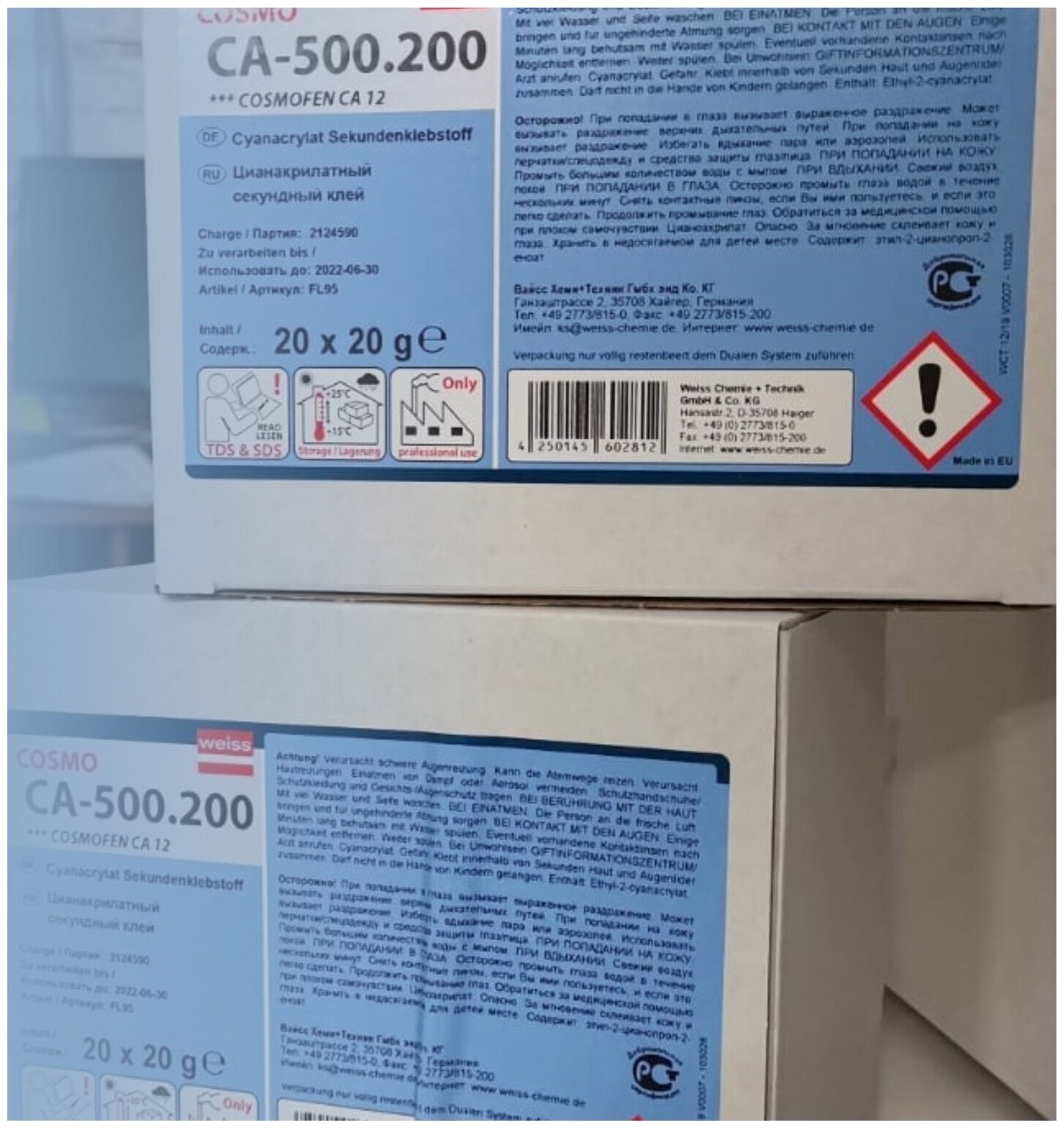 Комплект 4 штук, Клей цианоакрилатный секундный 20г COSMOCA-500.200(COSMOFEN CA 12)FL95/FL97