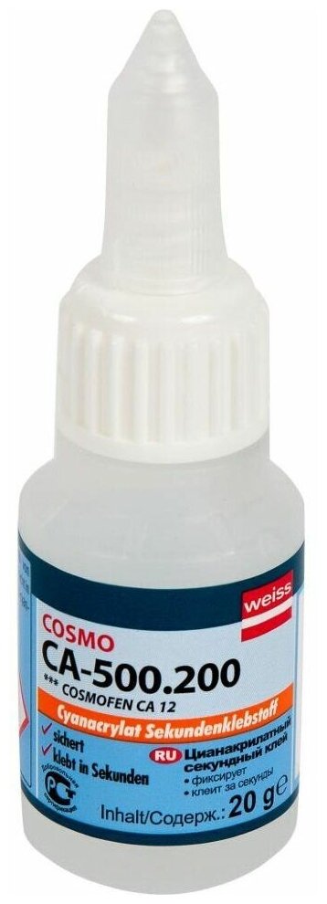 Суперклей Weiss Cosmo CA-500.200 CA12, мгновенная фиксация, 50г, прозрачный