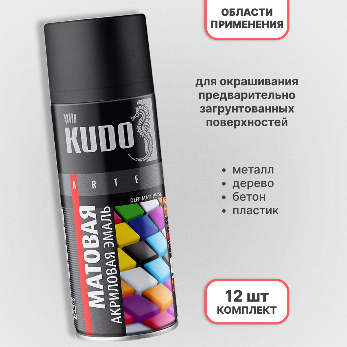 Аэрозольная акриловая краска Kudo KU-A9005M, матовая, 520 мл, черная