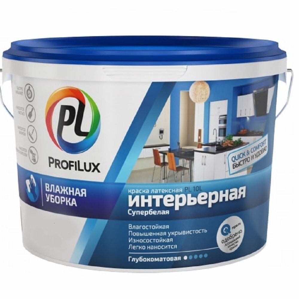 Краска ВД "Profilux" PL - 10L латекс. интерьерная влагостойкая супербелая 3кг
