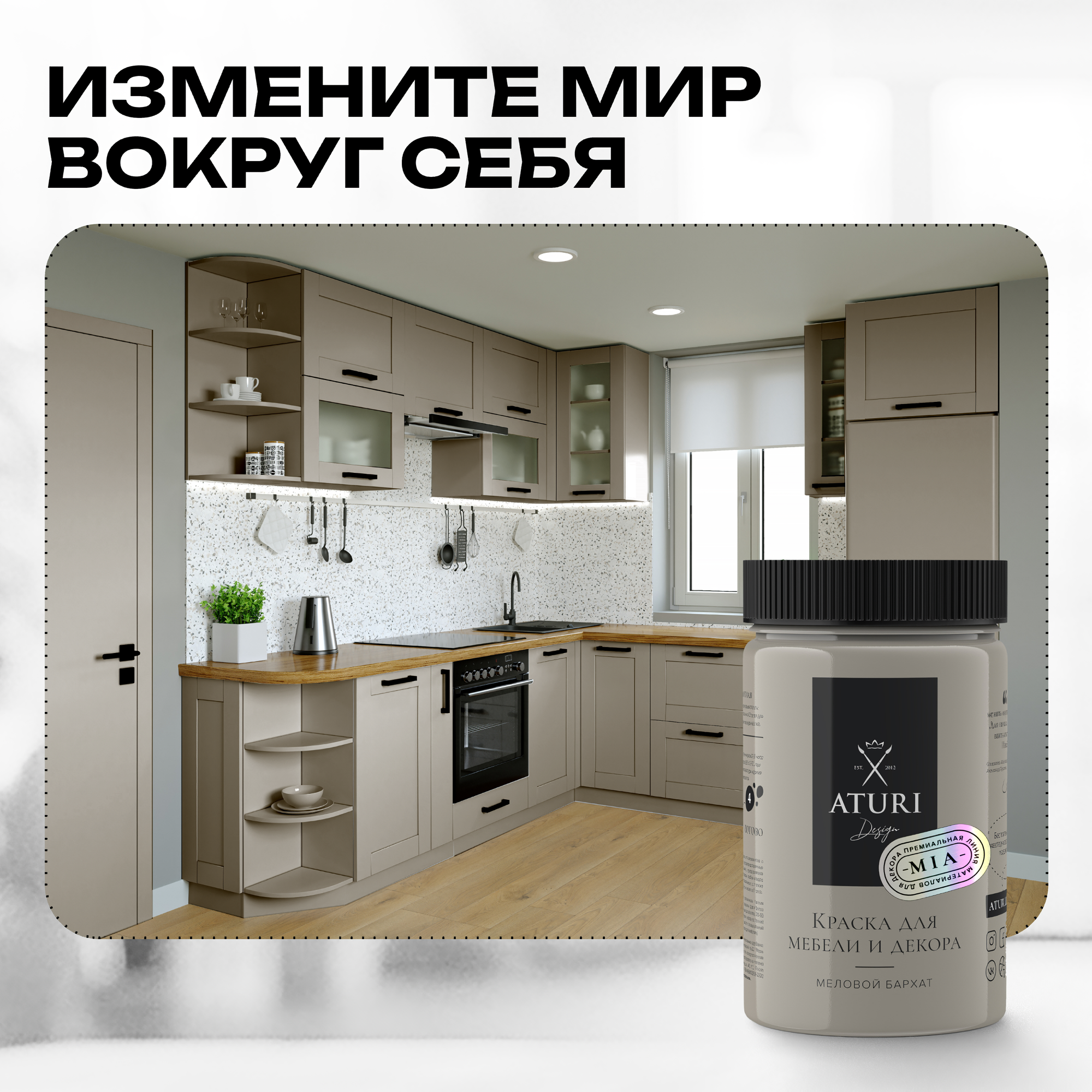 ATURI Design краска для мебели и декора меловой бархат mia нежный пепел T1-00012309