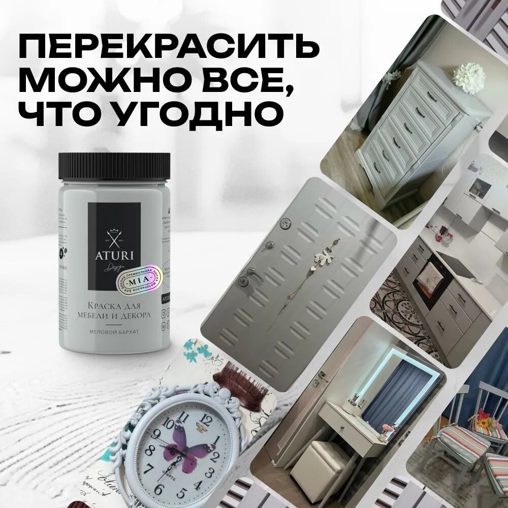 ATURI Design краска для мебели и декора меловой бархат mia нежный пепел T1-00012309