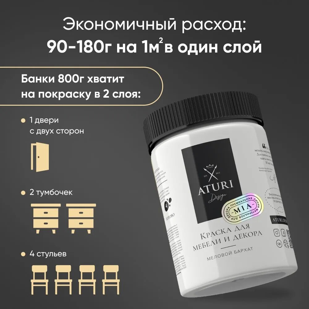 Матовая краска для мебели 0,8 кг без запаха, меловая быстросохнущая мебельная Aturi Design Mia для декора, кухни и кухонных фасадов, дверей, пластика и металла. Цвет: Черный бархат, чёрный