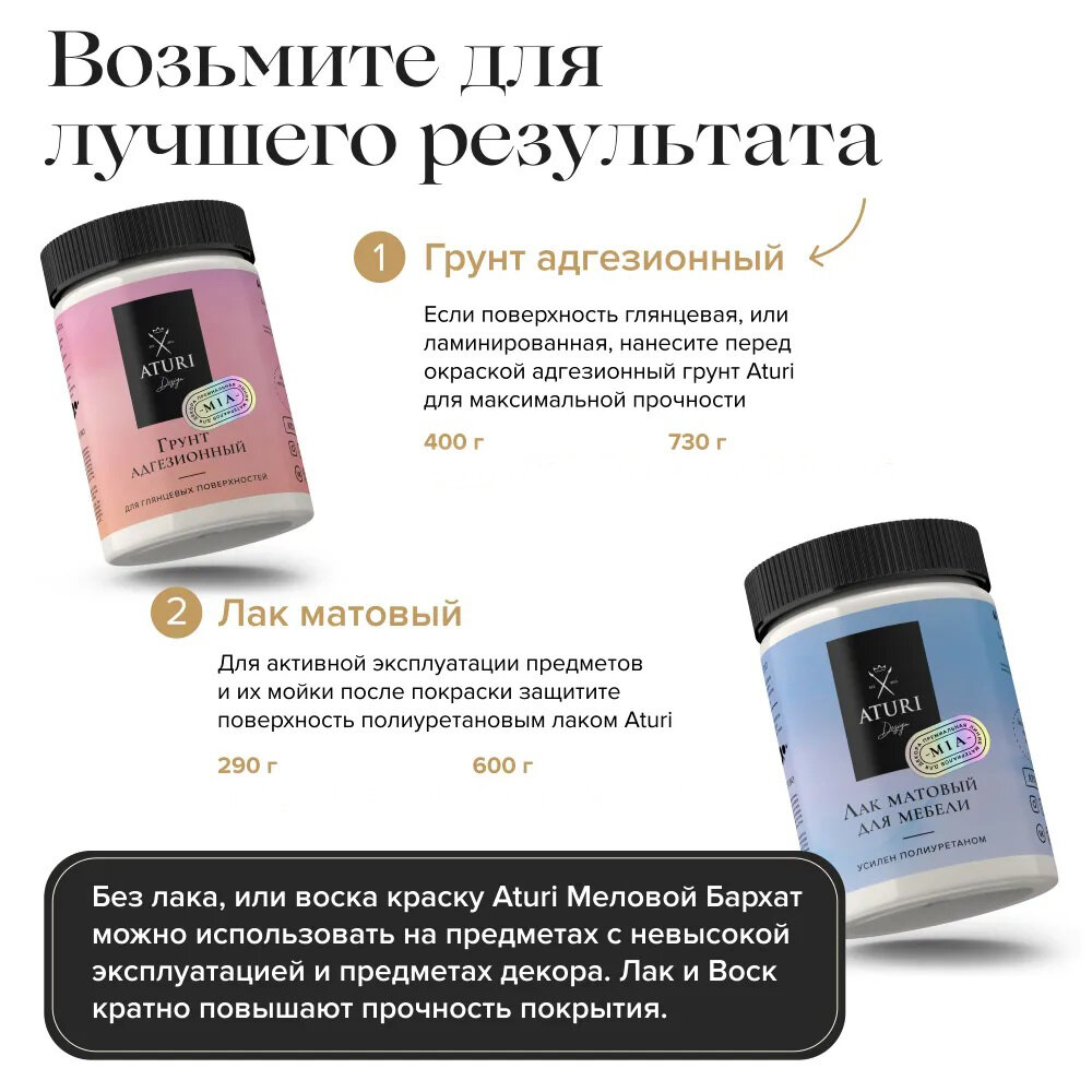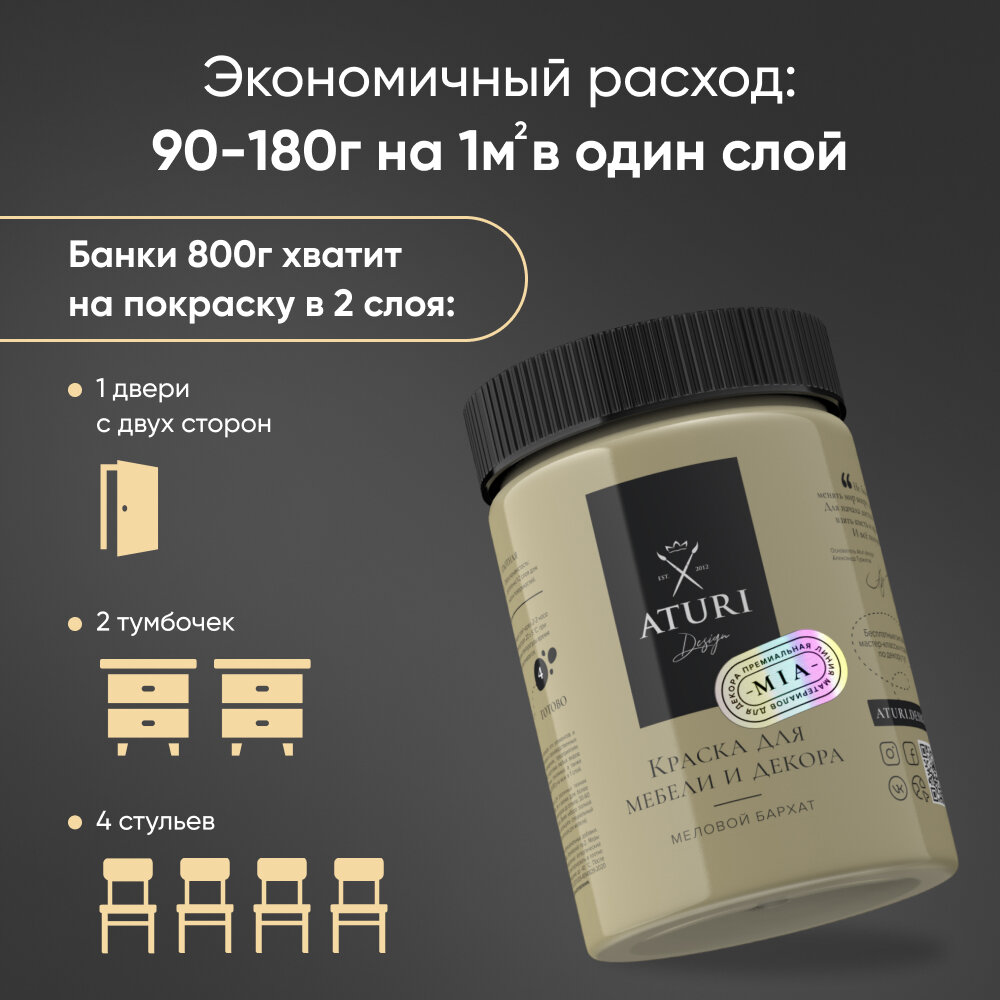 Краска меловая Aturi Design для мебели и декора MIA "Меловой Бархат" матовая белоснежный 0.4 кг