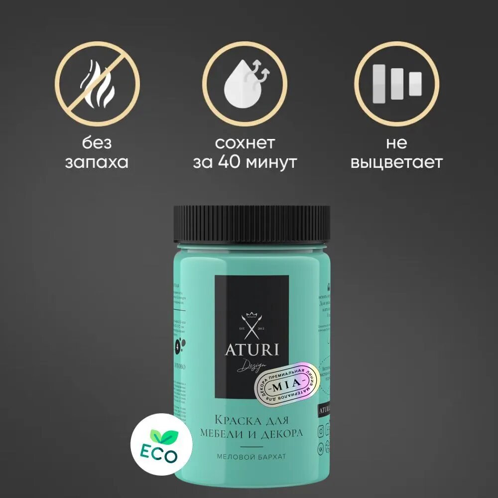 Матовая краска для мебели 0,8 кг без запаха, меловая быстросохнущая мебельная Aturi Design Mia для декора, кухни и кухонных фасадов, дверей, пластика и металла. Цвет: Бора-бора, бирюзовый, мятный