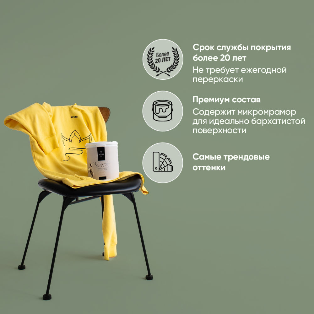 СохранитьКраска Aturi Design Velvet интерьерная, для стен, тестер; Цвет: Северная полынь, 60 гр интересное: