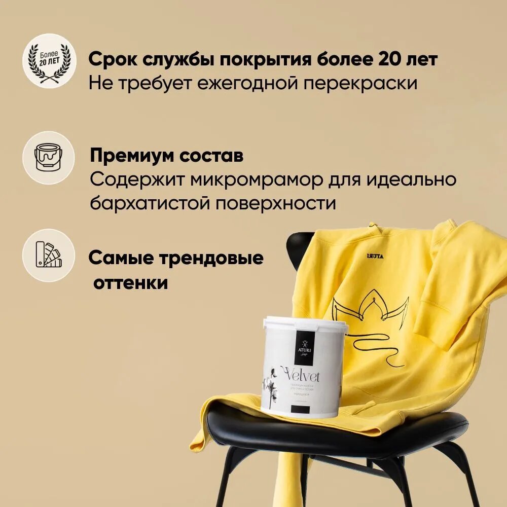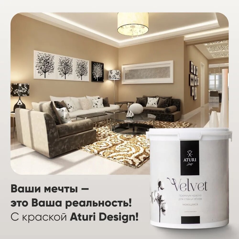 Краска интерьерная для стен и обоев Aturi Design Velvet цвет: Деликатный кашемир 3,5 кг. Матовая, моющаяся