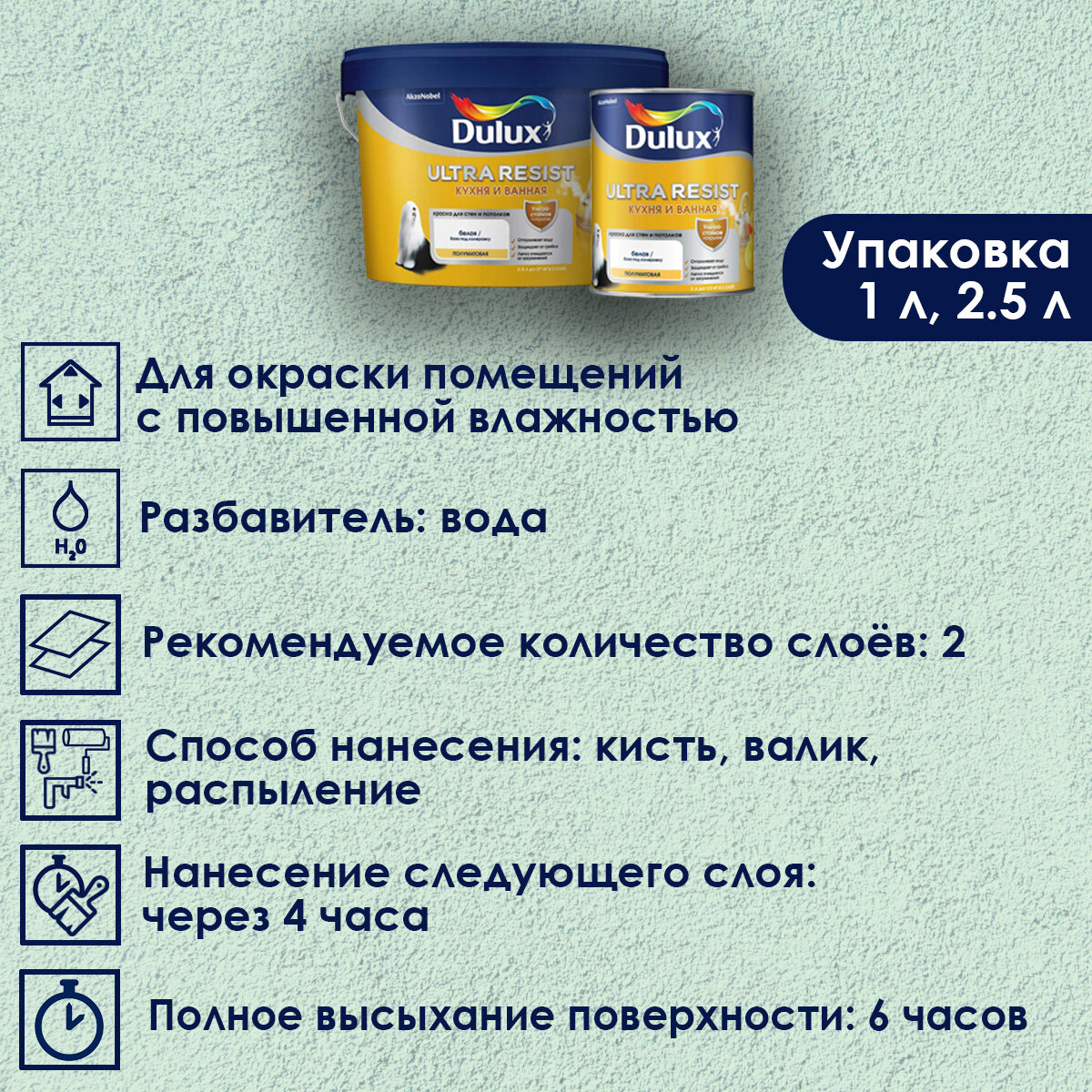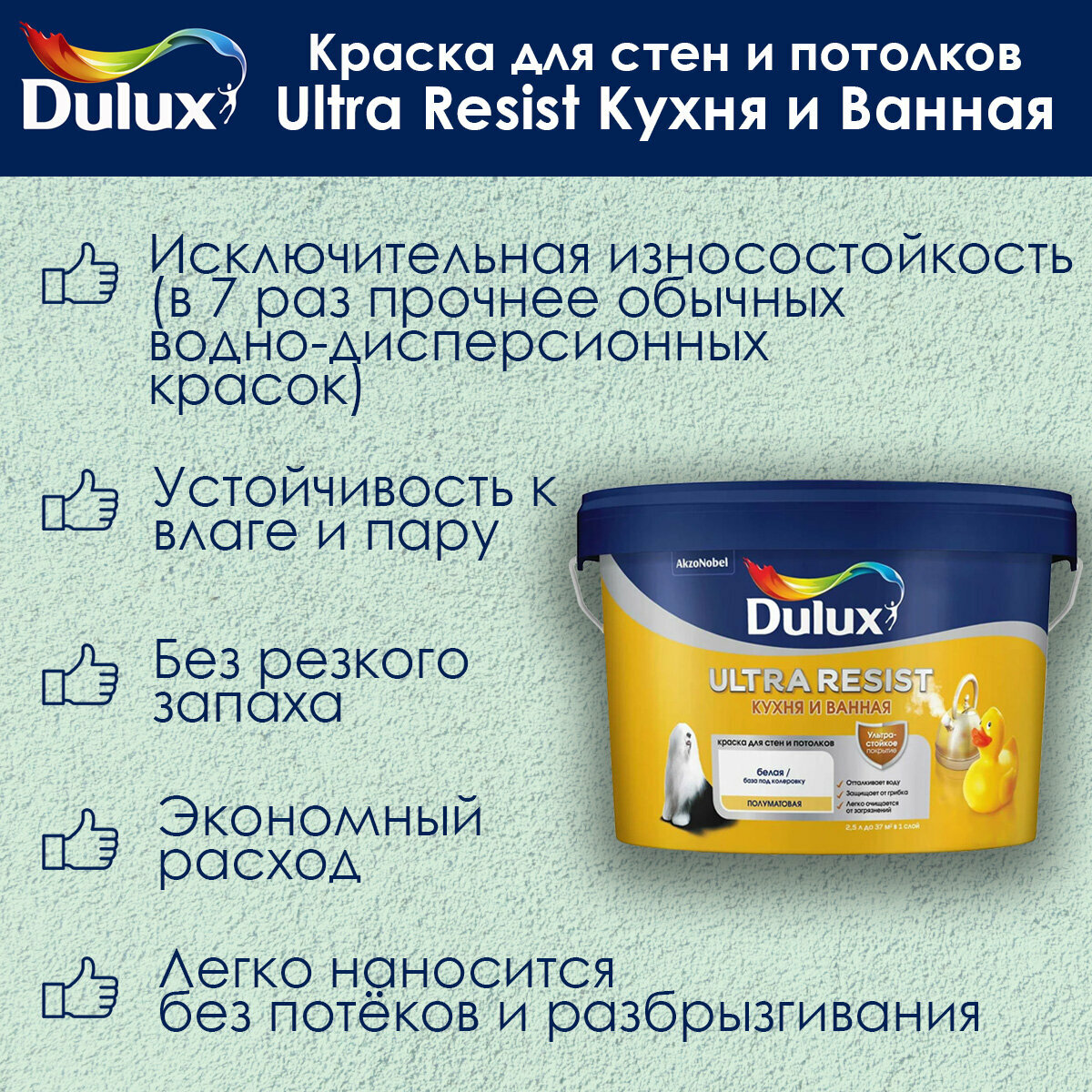 DULUX ULTRA RESIST кухня И ванная краска с защитой от плесени и грибка, матовая, база BW (2,5л)