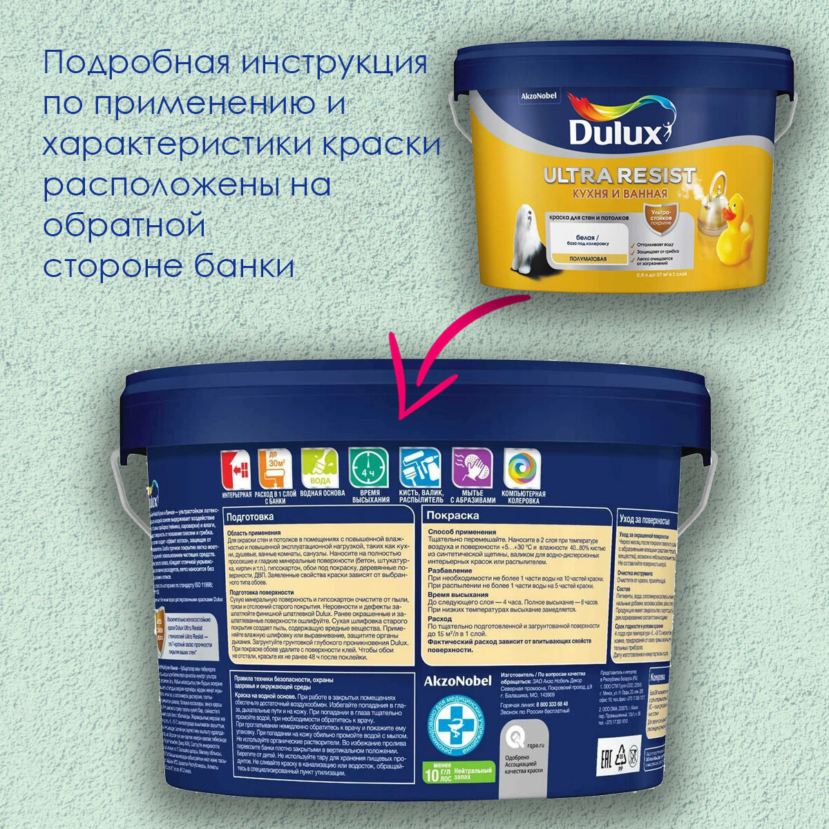Краска Dulux Ultra Resist Кухня и Ванная для стен и потолков база BW полуматовая 2.5 л