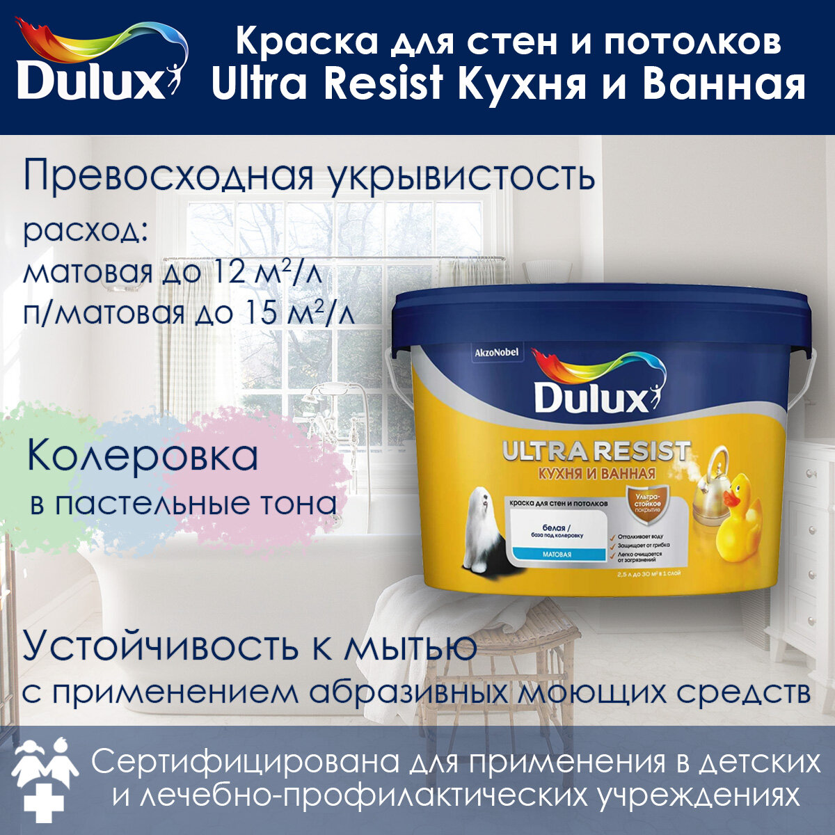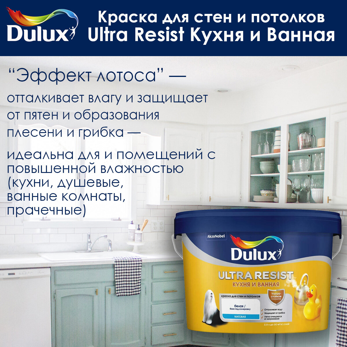 Краска для кухни и ванной Dulux ULTRA RESIST