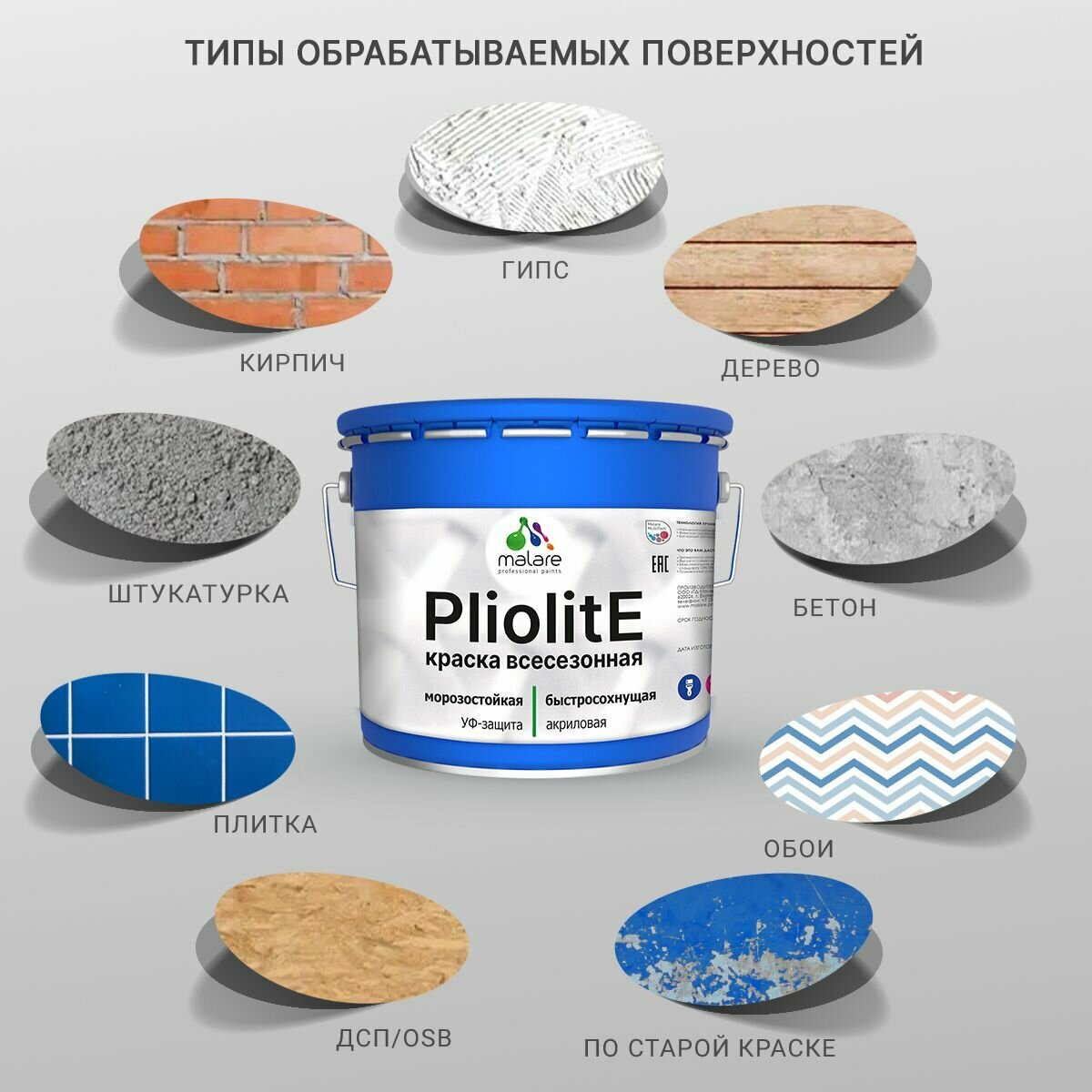 Краска-эмаль Pliolite всесезонная, зимняя, для всех типов поверхностей, антикоррозионная, RAL 7035, светло-серый, глянцевая, 10 кг.