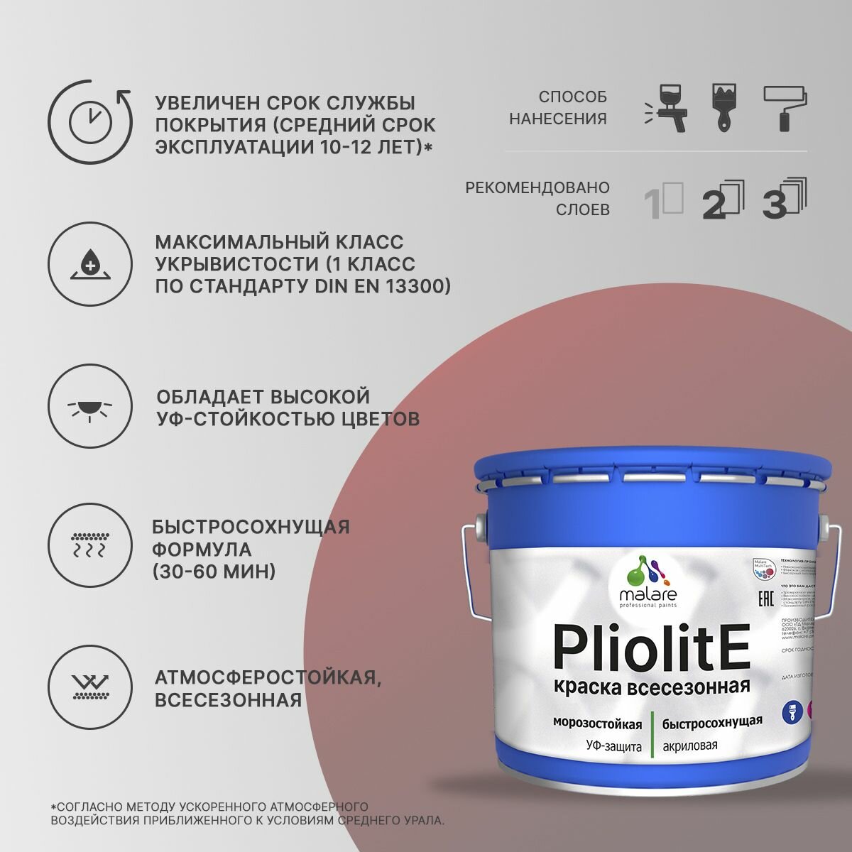 Краска-эмаль Pliolite всесезонная, зимняя, для всех типов поверхностей, антикоррозионная, RAL 3005, вишнево-бордовый, глянцевая, 10 кг.